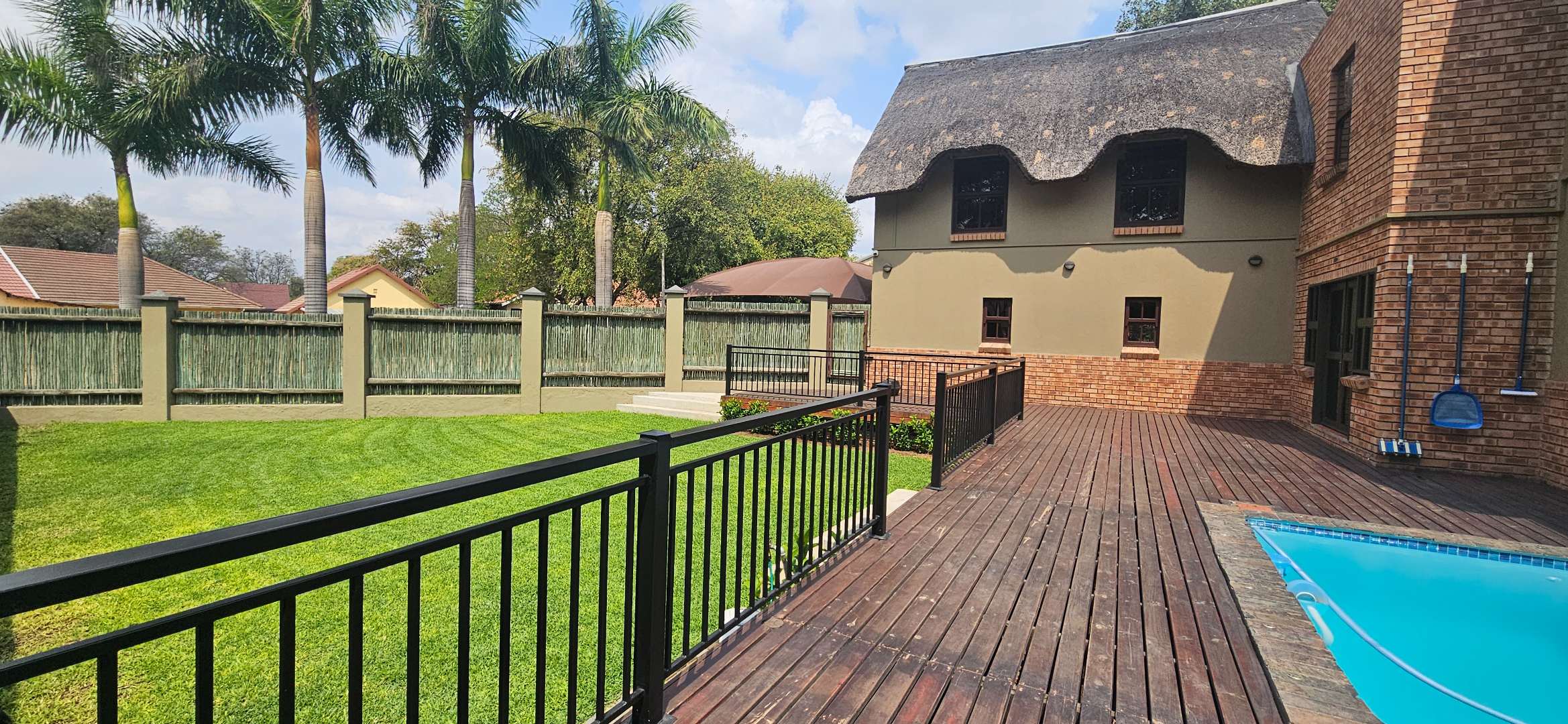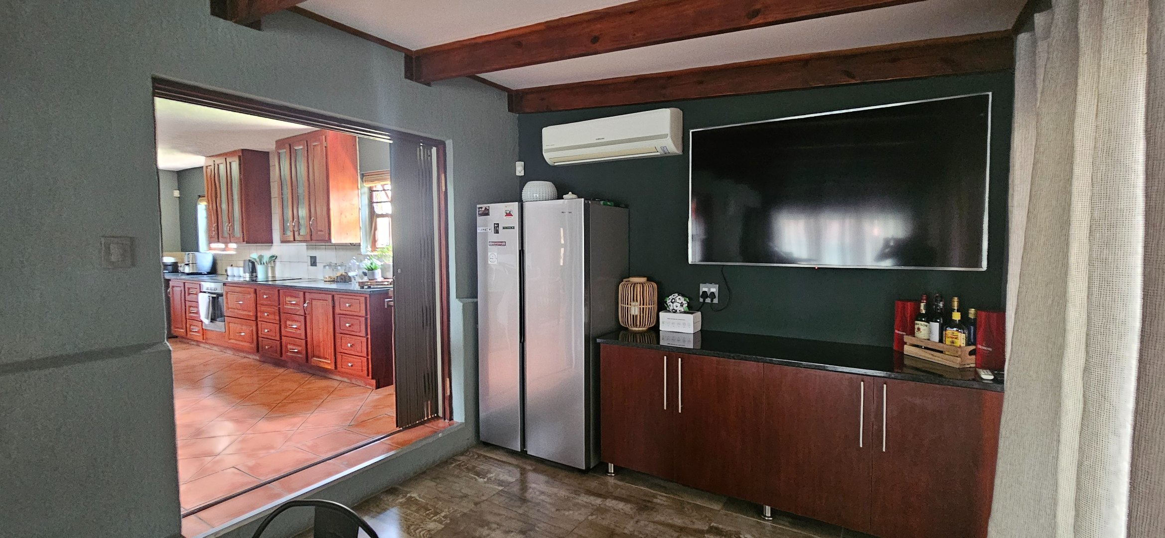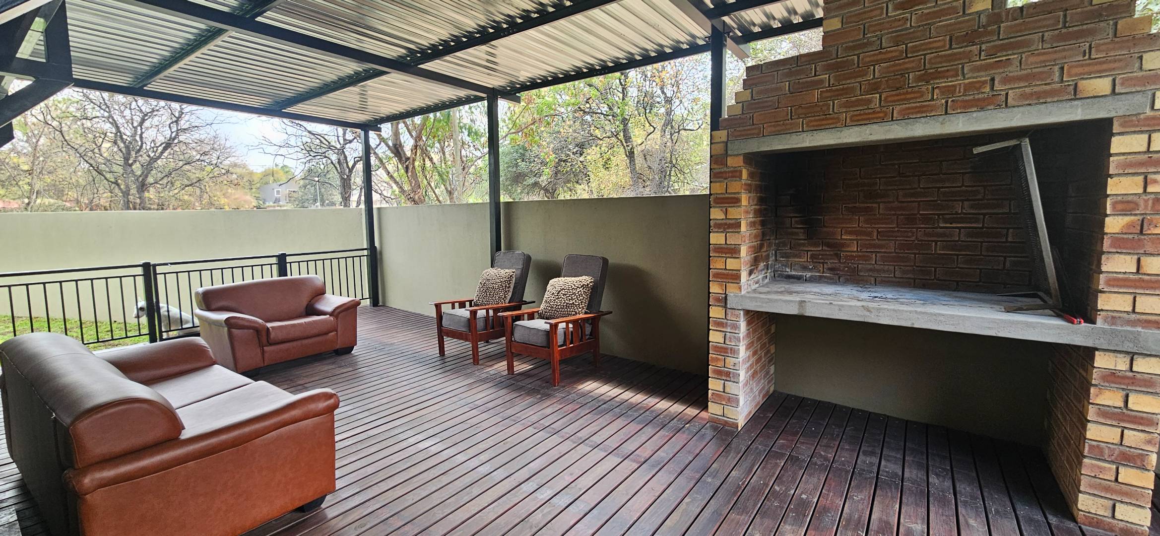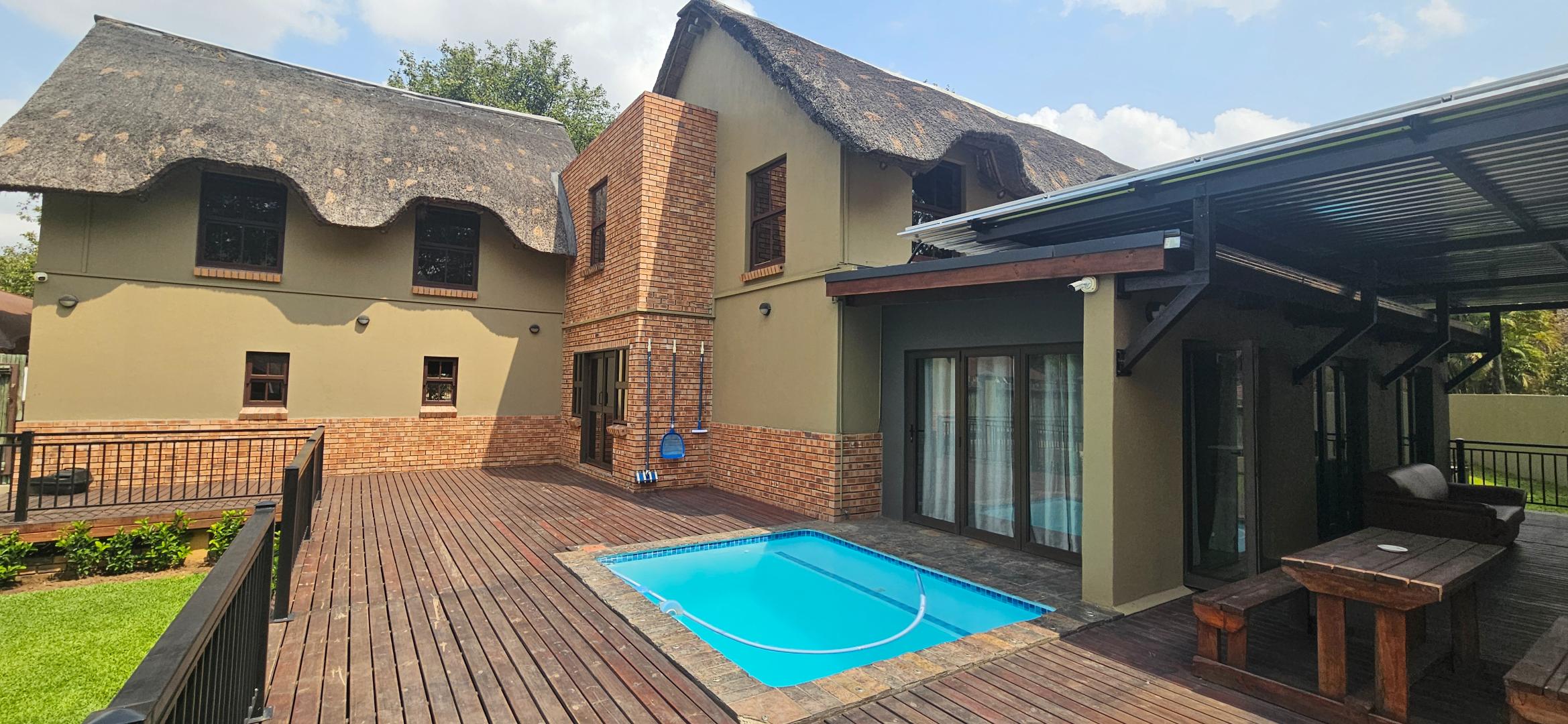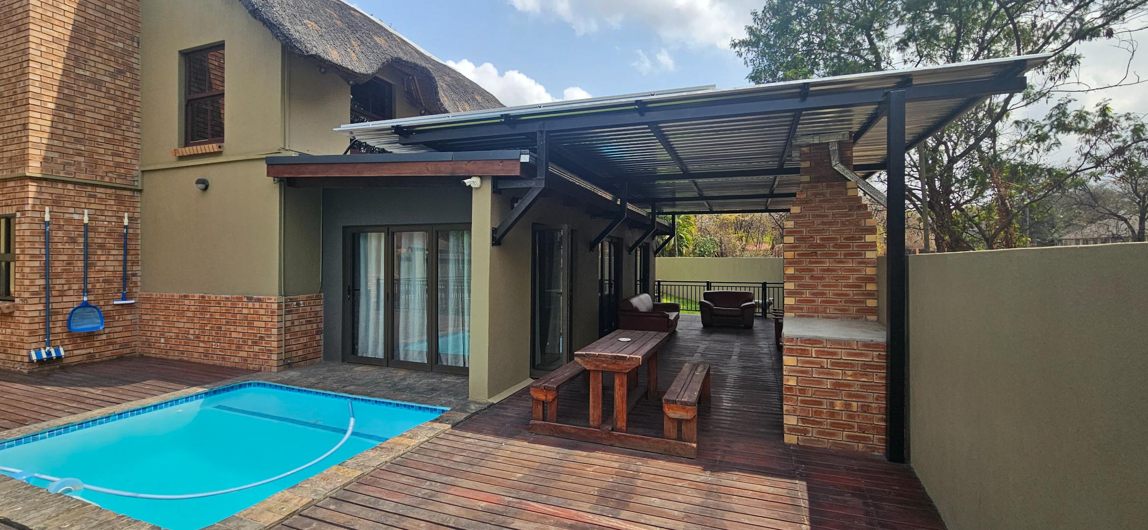 Relax or entertain on the spacious covered patio with built-in braai or cool off in the sparkling swimming pool with wooden deck