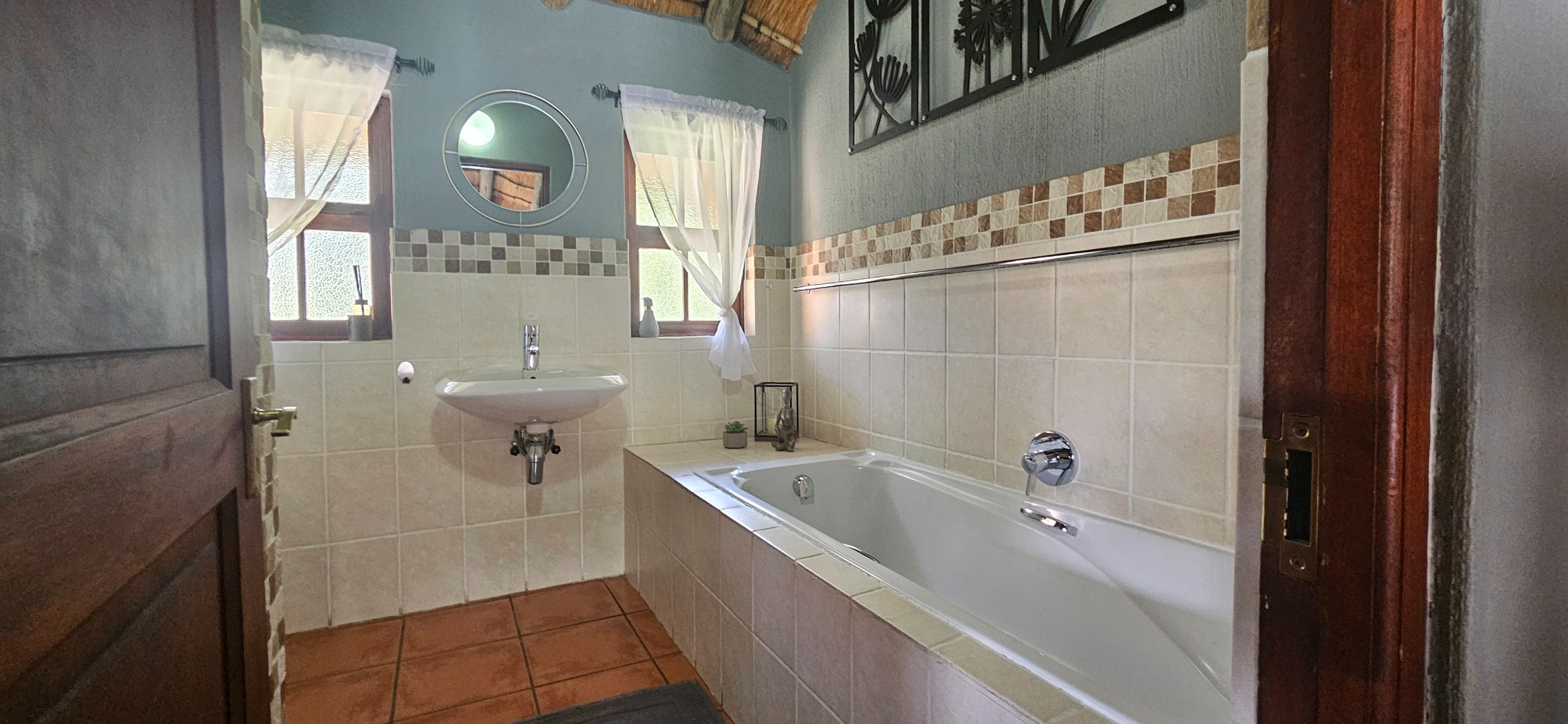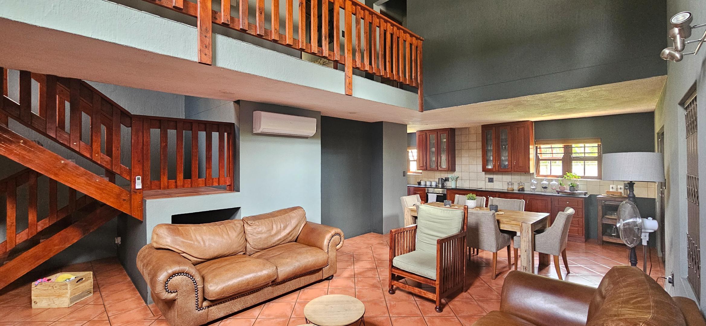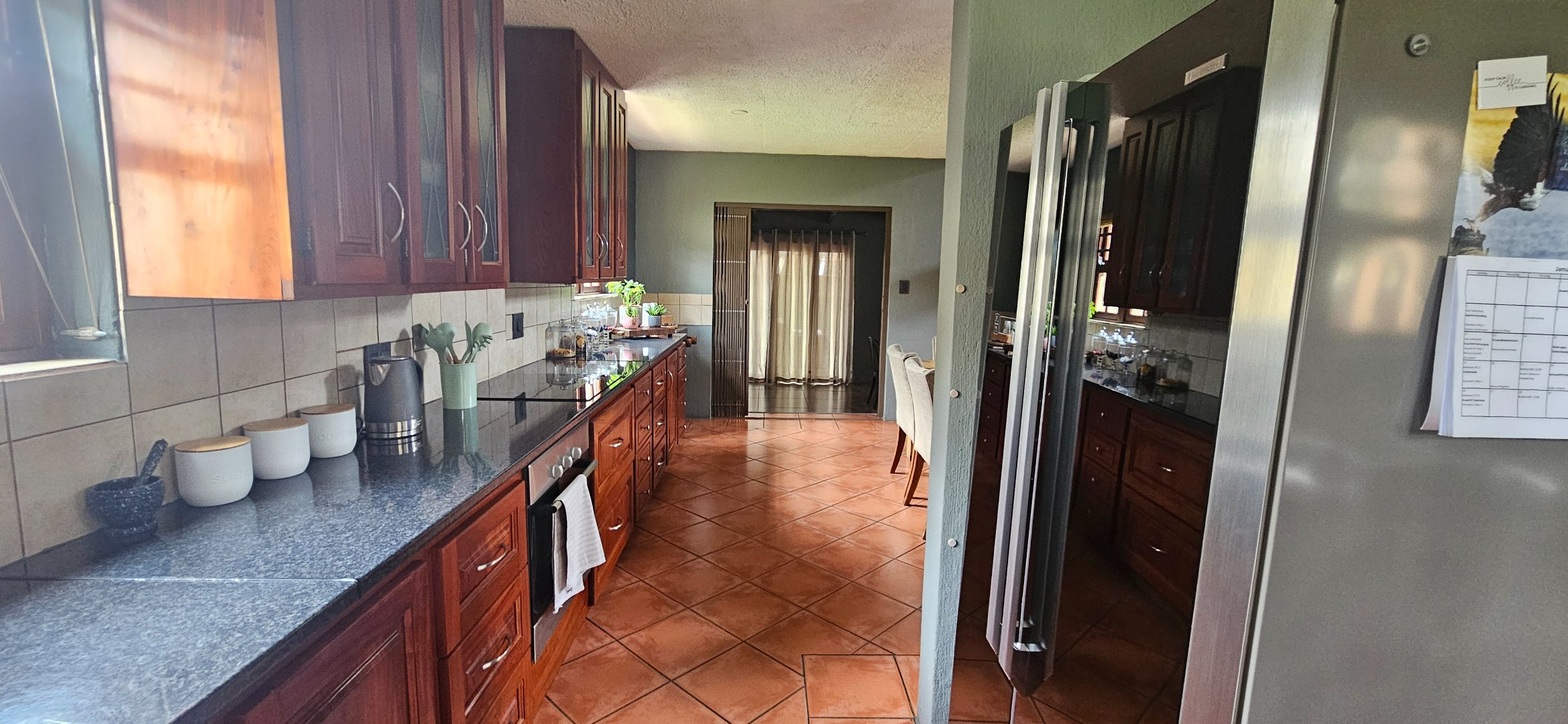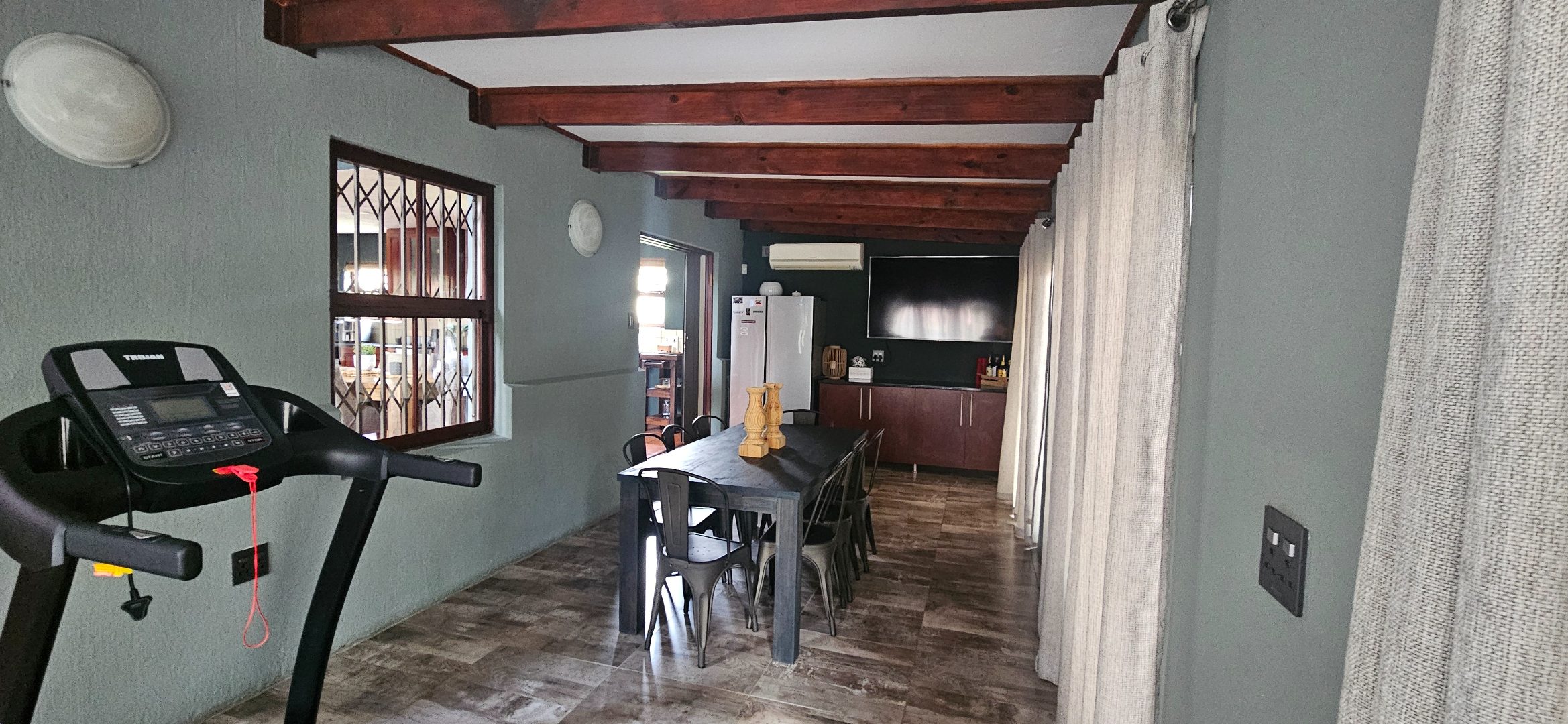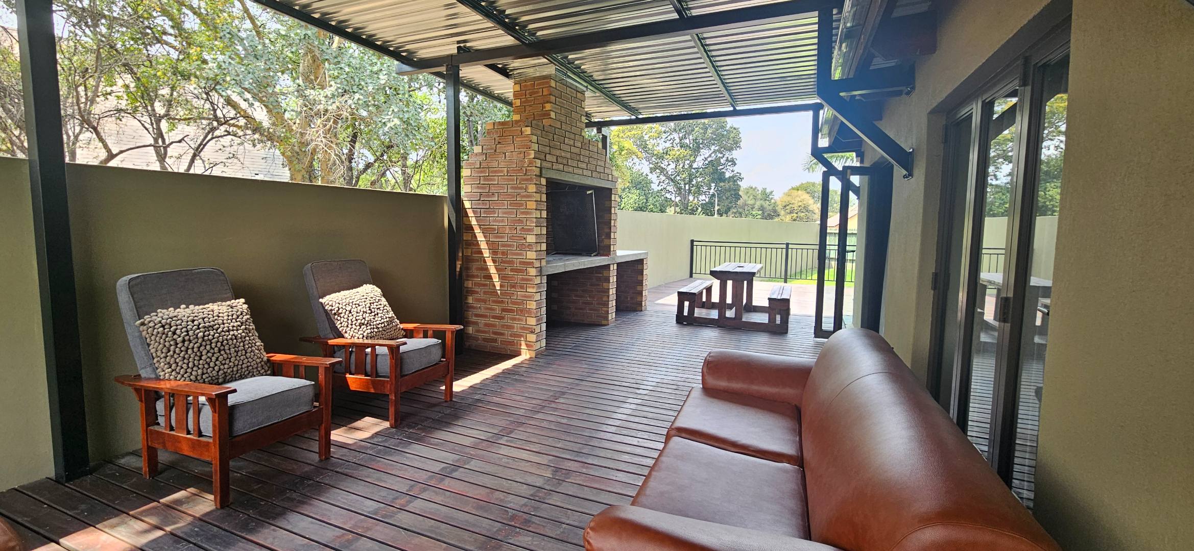 Relax or entertain on the spacious covered patio with built-in braai or cool off in the sparkling swimming pool with wooden deck