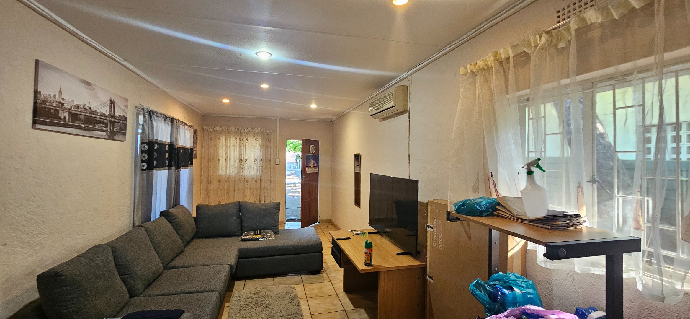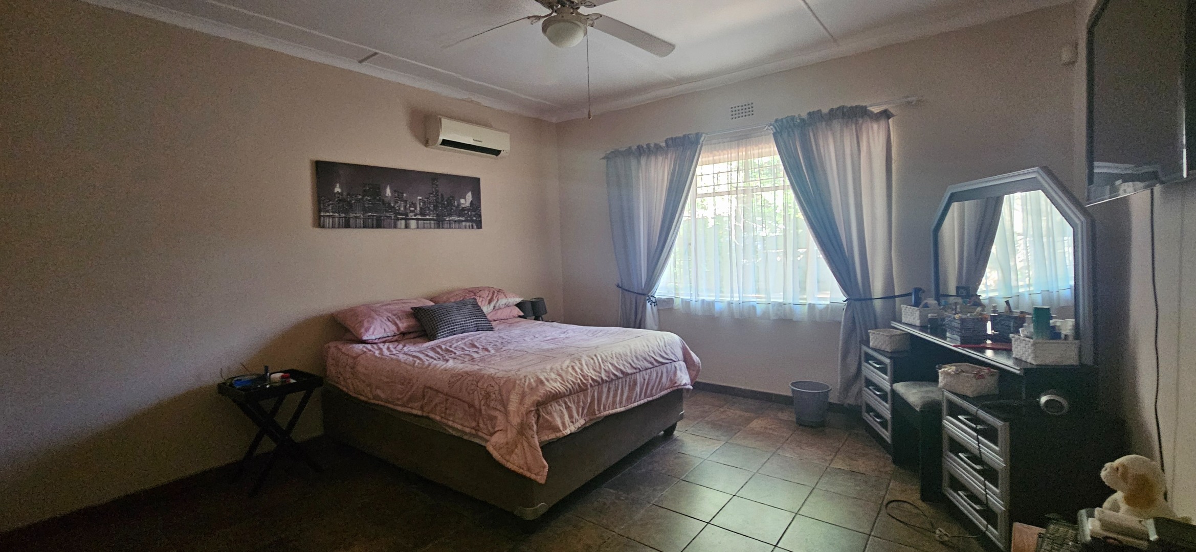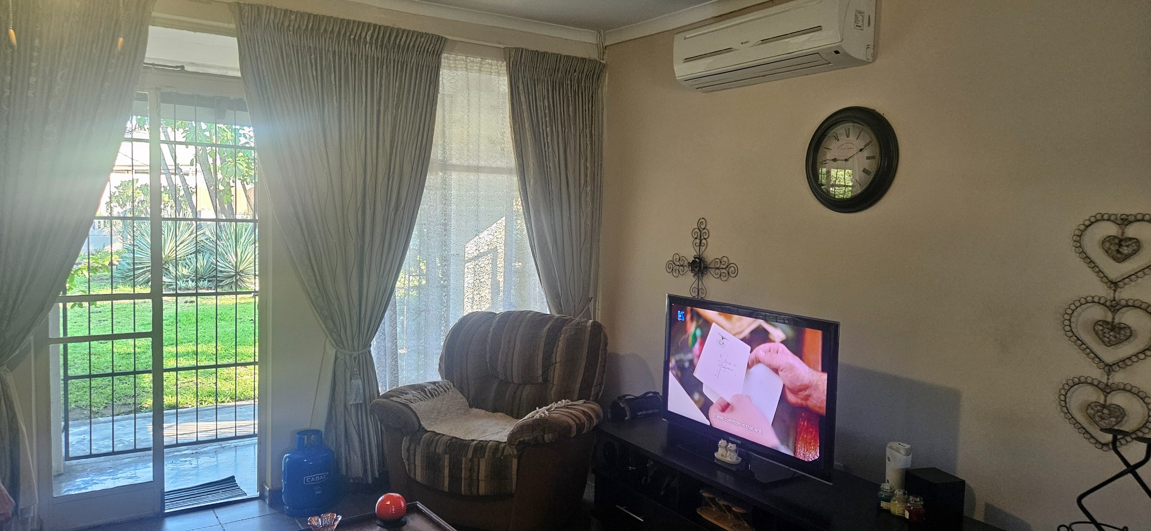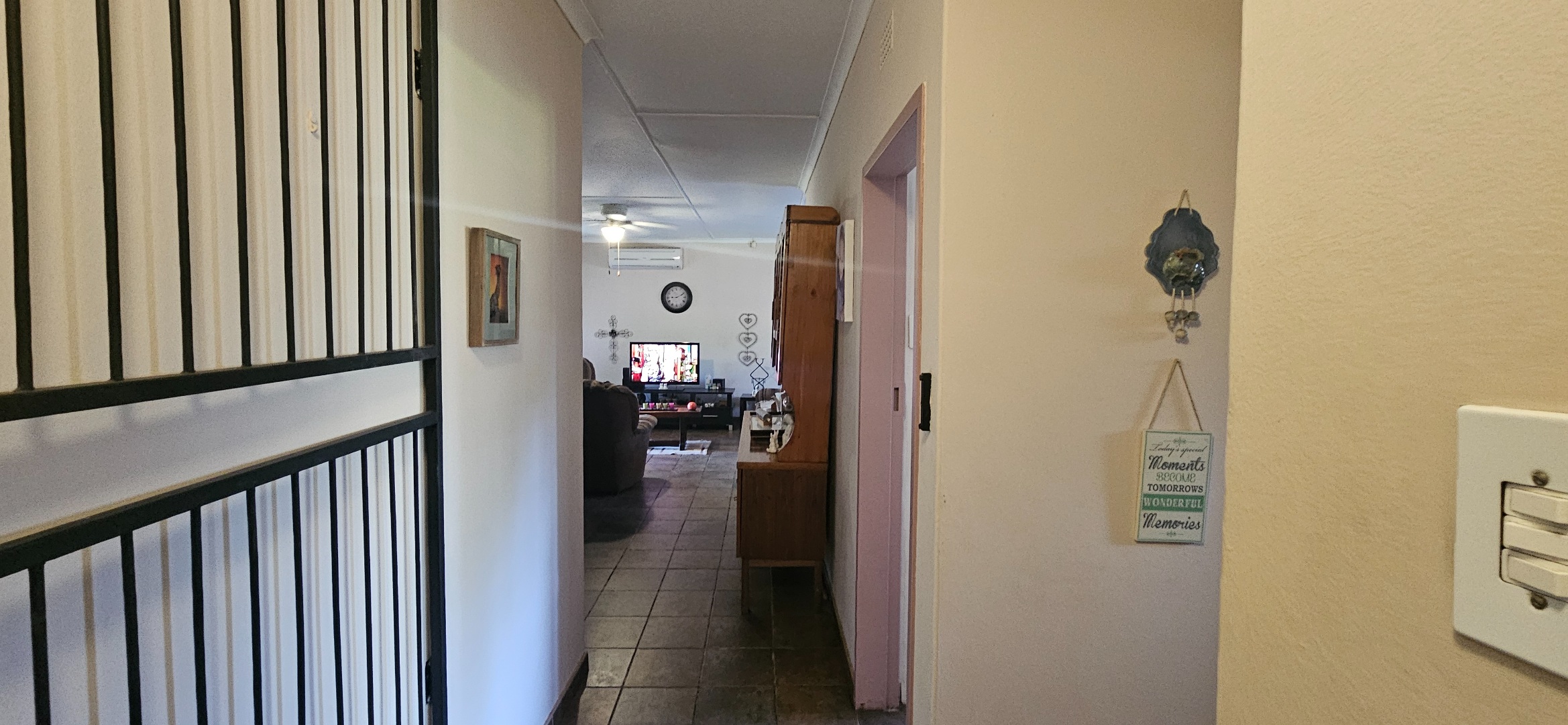 For peace of mind, the property is equipped with essential security features including burglar bars on windows and an access gate. Air conditioning units are installed to ensure comfort throughout the year, adapting to Phalaborwa's climate. The inviting exterior, highlighted by its vibrant garden, creates a welcoming first impression, promising a tranquil living environment.