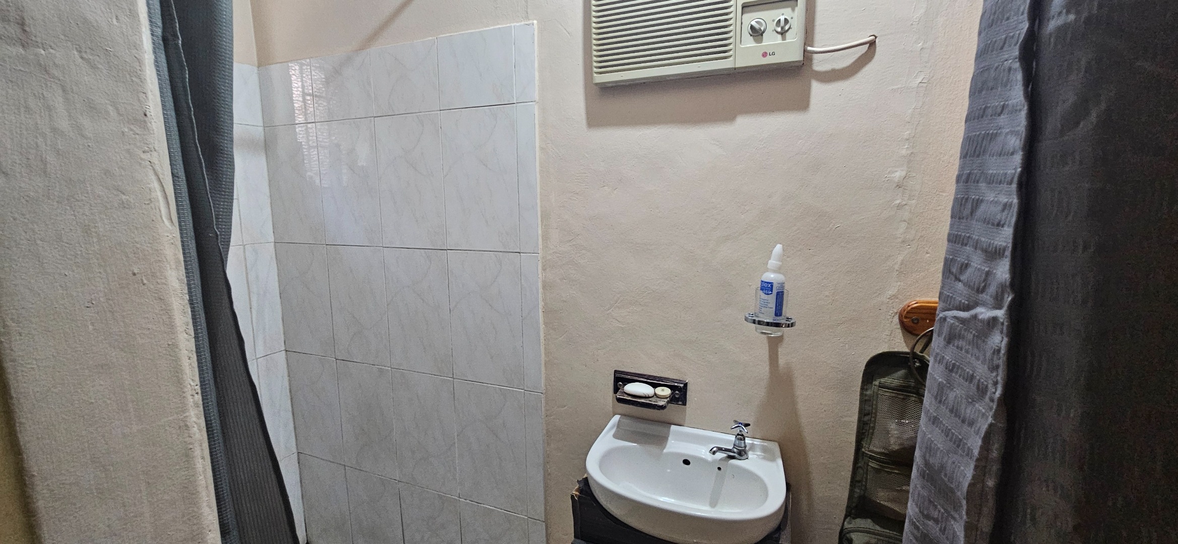 This home offers three comfortable bedrooms, each providing a private retreat. The main bedroom includes an air conditioning unit and a ceiling fan for enhanced comfort. The property features one full bathroom, thoughtfully designed with a freestanding bathtub and a modern vessel sink. Additionally, a spacious walk-in shower with a rainfall shower head provides a contemporary bathing experience, alongside a convenient guest toilet for added functionality.