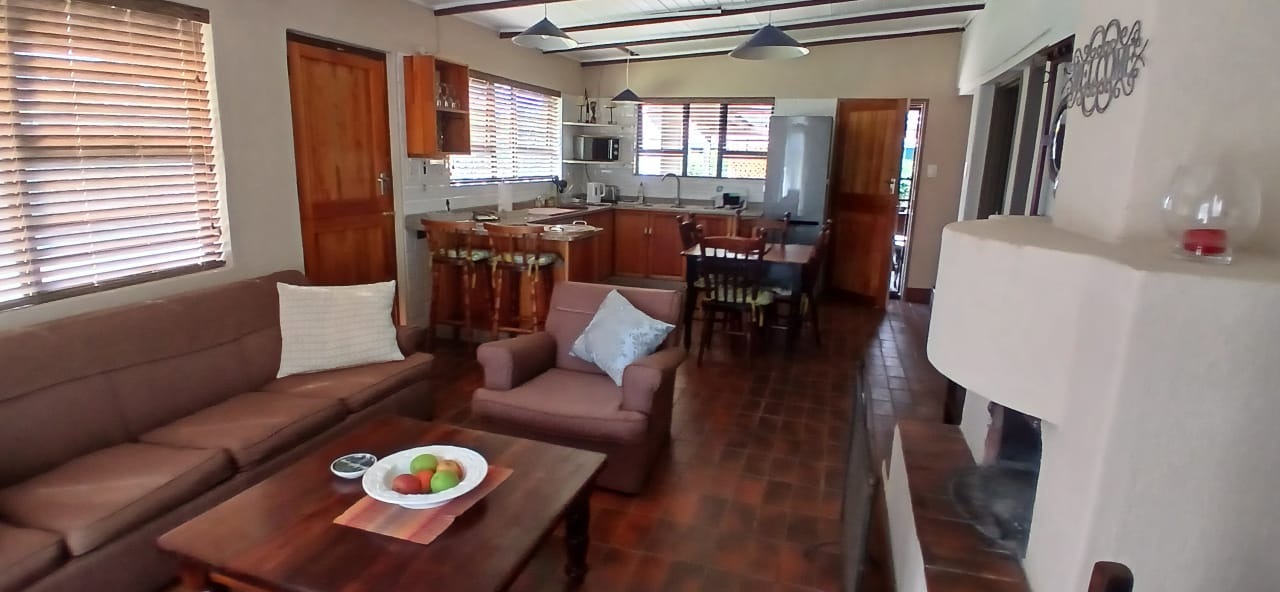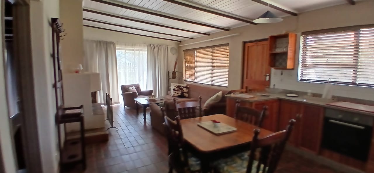 This charming two-bedroom, two-bathroom home in Graskop offers comfortable living in a serene setting. Both bedrooms feature en-suite bathrooms, ensuring privacy and convenience. The kitchen is equipped with built-in cupboards and flows seamlessly into the open-plan lounge and dining area, creating a warm and inviting atmosphere. A cozy fireplace adds to the charm, perfect for chilly evenings. The home also includes a covered parking space and a private balcony overlooking the garden. Security features such as an alarm system, access gate, and perimeter fencing provide peace of mind. The well-maintained garden adds a touch of greenery, completing this delightful property.