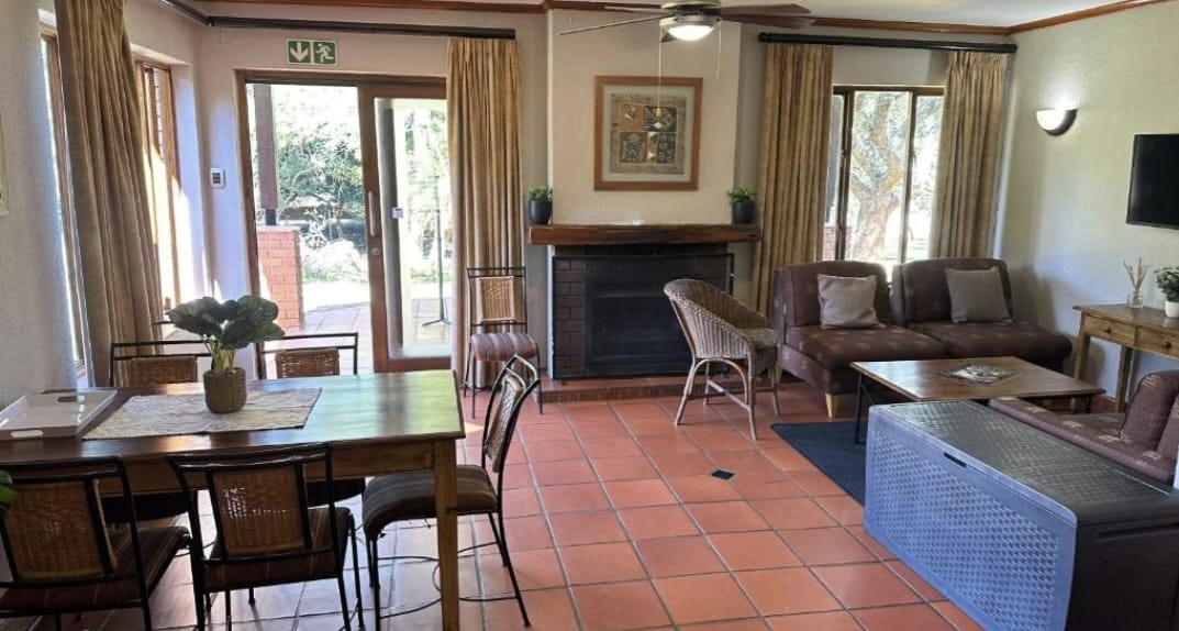 Residents and guests enjoy access to excellent outdoor amenities, including a year-round swimming pool, well-kept gardens, outdoor seating areas, and a cozy outdoor fireplace—perfect for relaxing in the Lowveld climate.