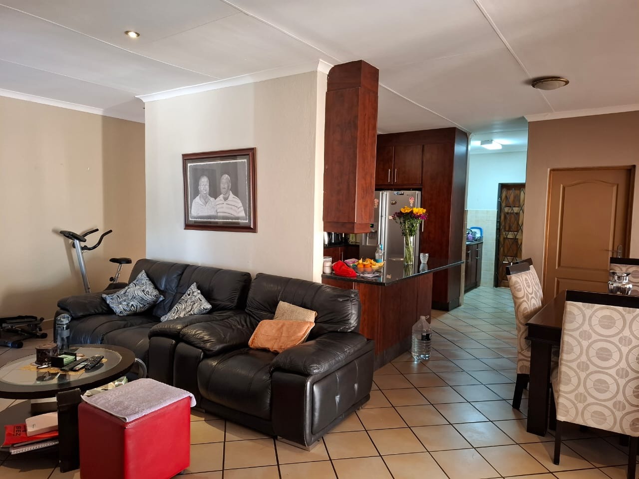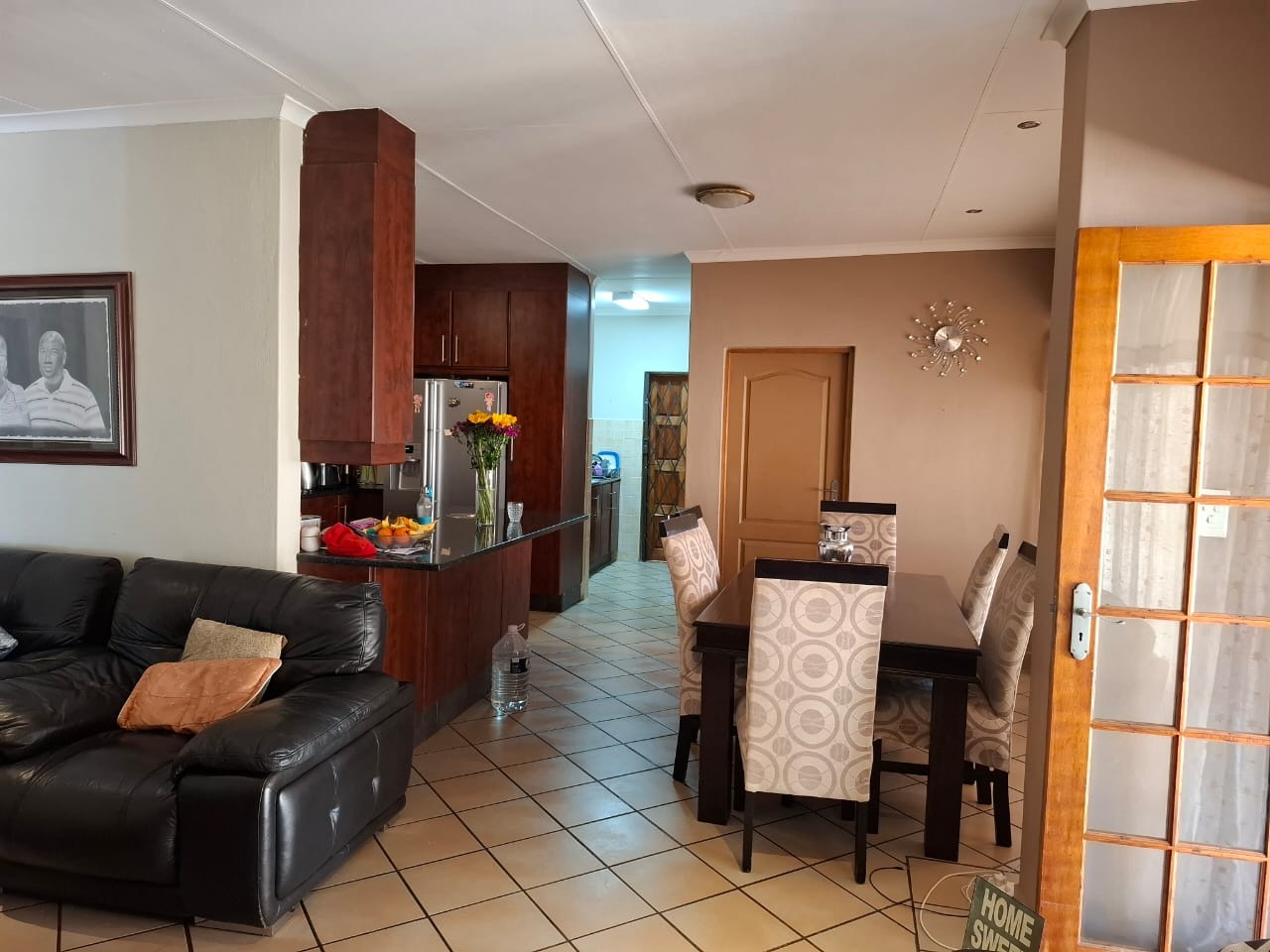Enjoy an open-plan lounge and dining area that flows seamlessly into a well-designed kitchen, complete with built-in cupboards and ample storage. The covered patio is perfect for entertaining or relaxing outdoors, overlooking the neat, low-maintenance garden.