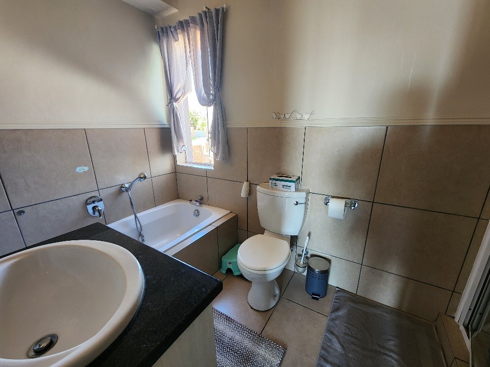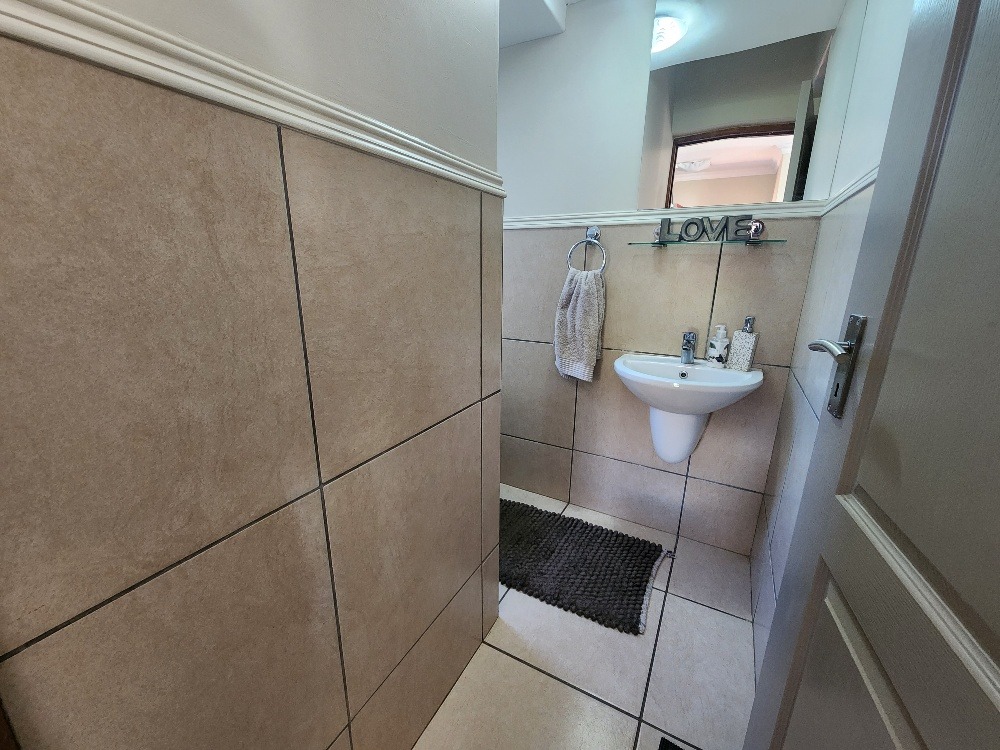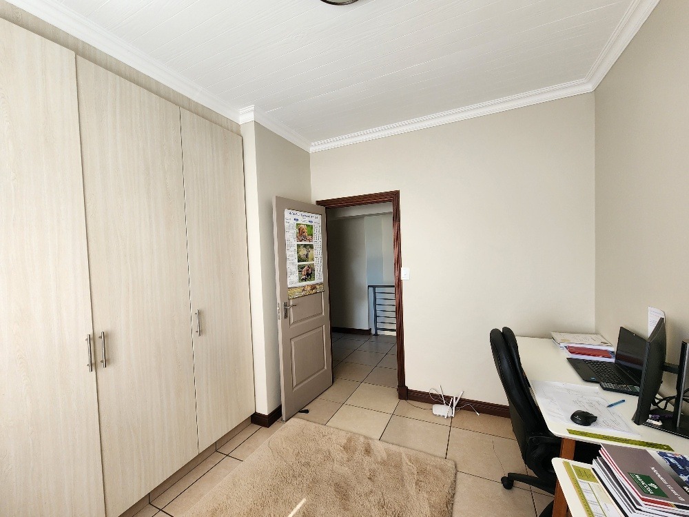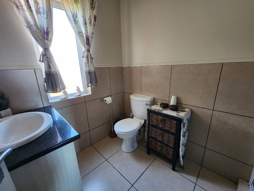 It offers 3 bedrooms, 2 bathrooms and 1 en-suite as well as a downstairs guest toilet. The stunning open plan kitchen is fitted with granite tops and a lot of cupboard space with a separate scullery for your convenience. A spacious lounge for those relaxing days and a lovely big garden for pets and kids to enjoy.