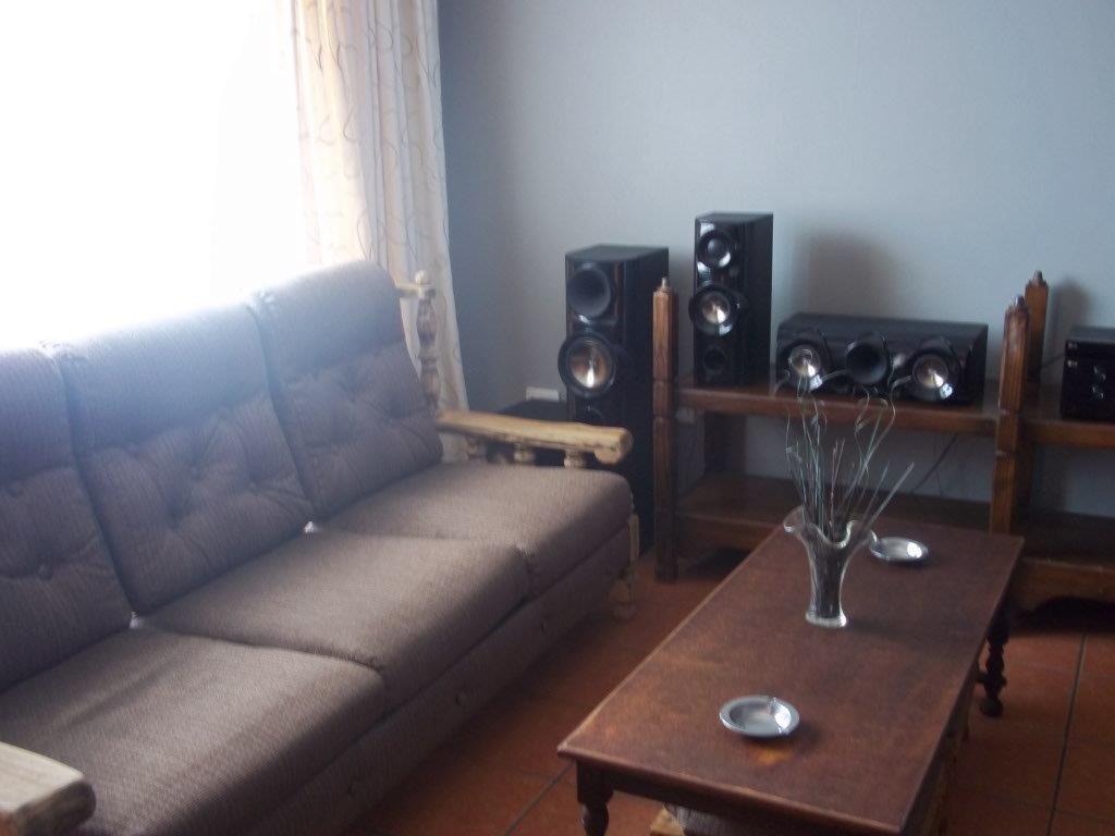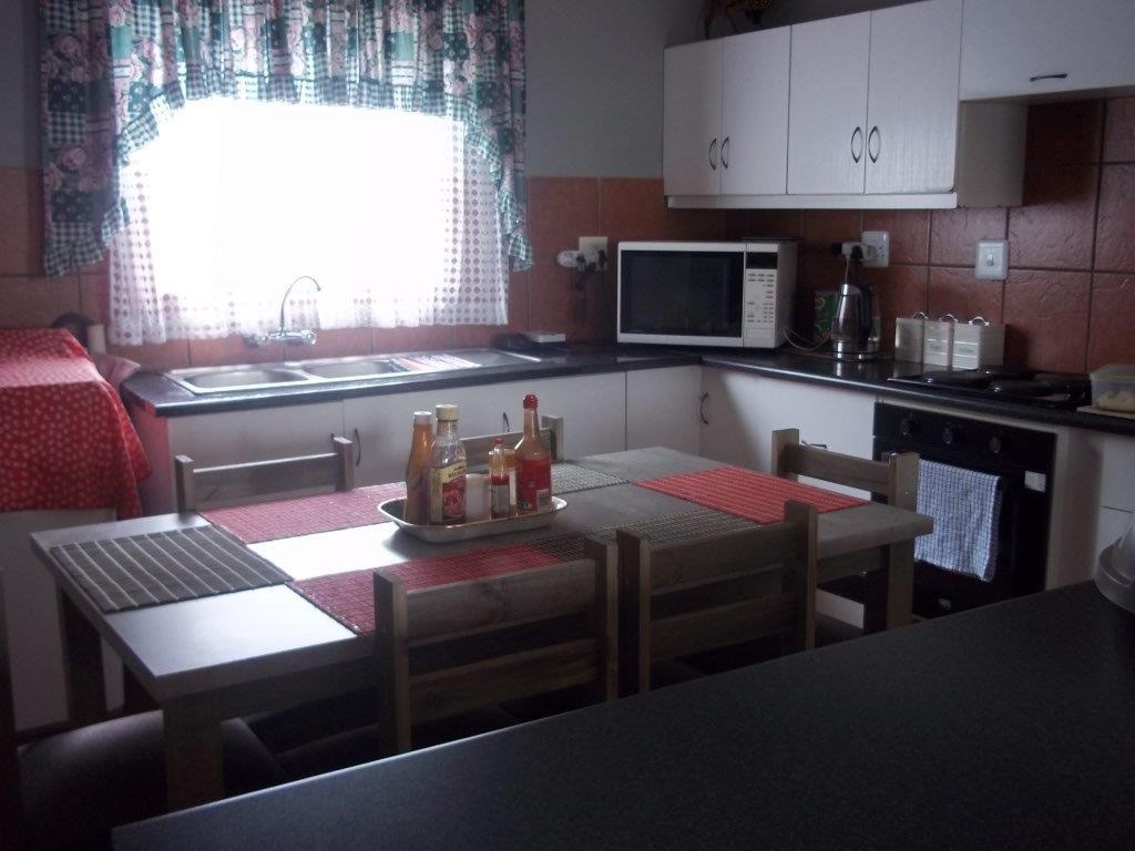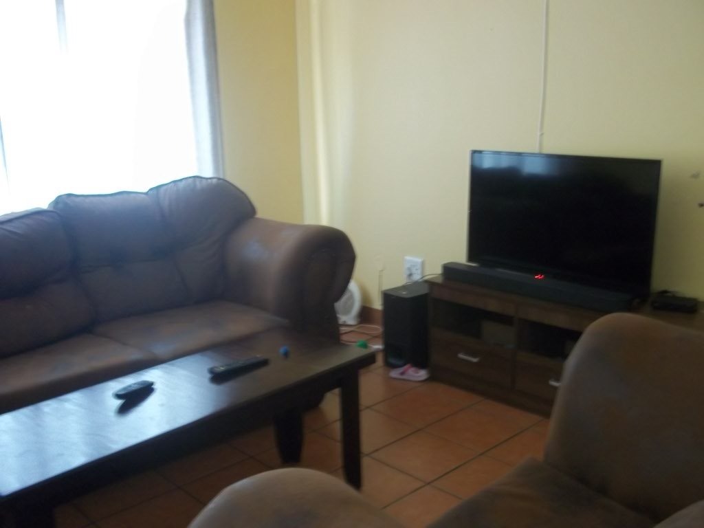 This inviting residential unit provides a practical layout designed for comfortable living. It features three well-proportioned bedrooms and a single bathroom, offering ample space for a family or professionals. The functional kitchen is equipped with a built-in oven and hob, a double sink, and sufficient counter space, complemented by an integrated dining area for casual meals. A dedicated lounge area provides a comfortable space for relaxation and entertainment. Throughout the interior, durable tiled flooring ensures easy maintenance, visible across the living spaces and bedrooms.