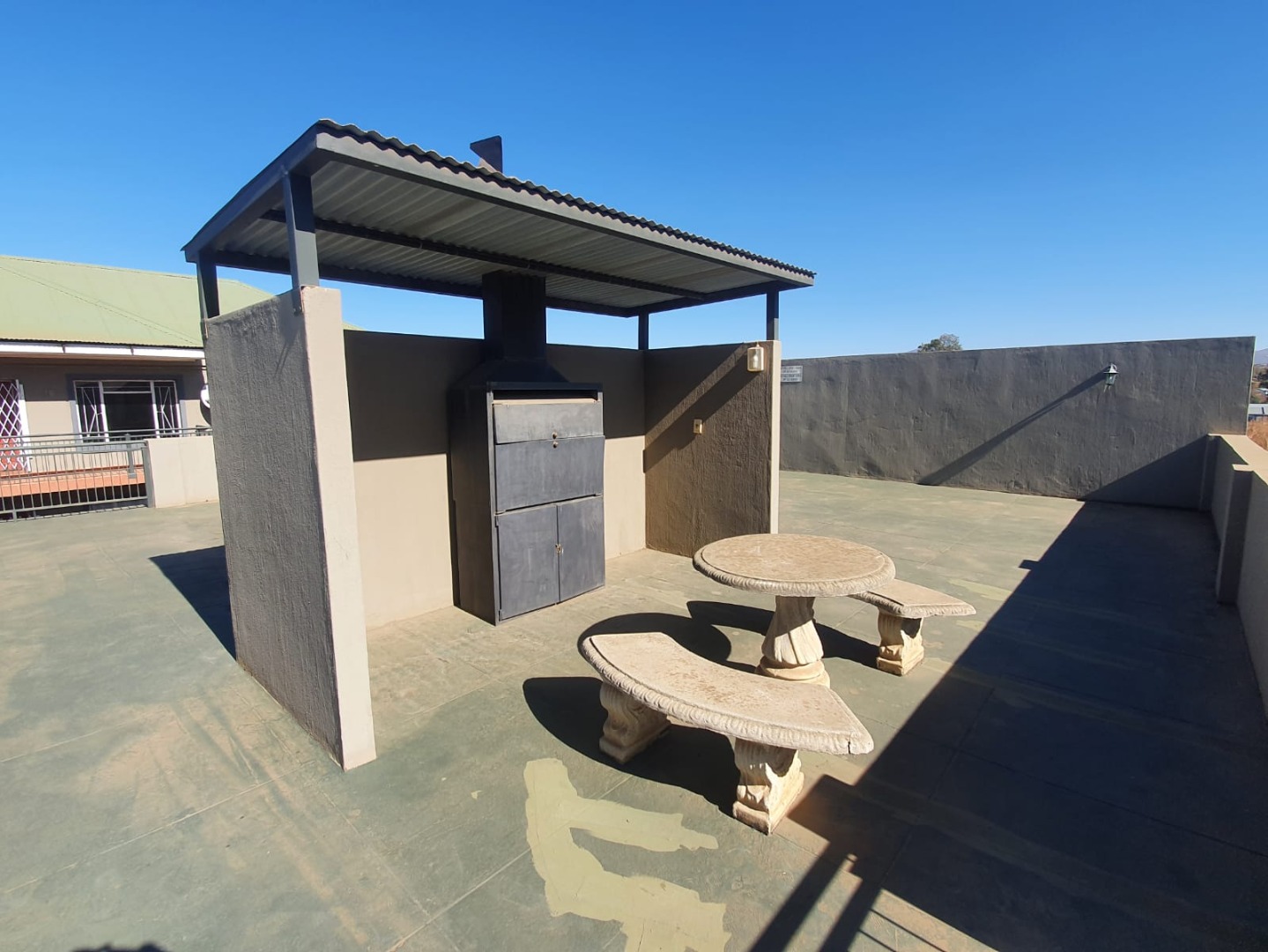 Security is a key consideration, with the property featuring security bars on all windows and an access gate to the complex, contributing to a safe and secure living environment. For vehicle owners, the property includes a double garage, offering secure parking and additional storage space. The complex also provides a communal braai area, perfect for outdoor entertaining and socialising with neighbours, adding to the lifestyle appeal. Paved areas around the property ensure neatness and easy access.