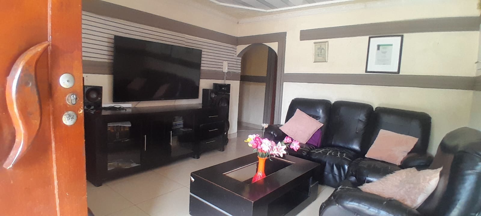Step inside to find thoughtfully arranged living spaces, including two spacious lounges and a dedicated dining room, providing ample room for relaxation and social gatherings. The well-appointed kitchen caters to all culinary needs. The home features four comfortable bedrooms, with the main bedroom benefiting from a private en-suite bathroom, complemented by a second family bathroom. Sliding doors and special doors enhance the flow and natural light throughout the property.