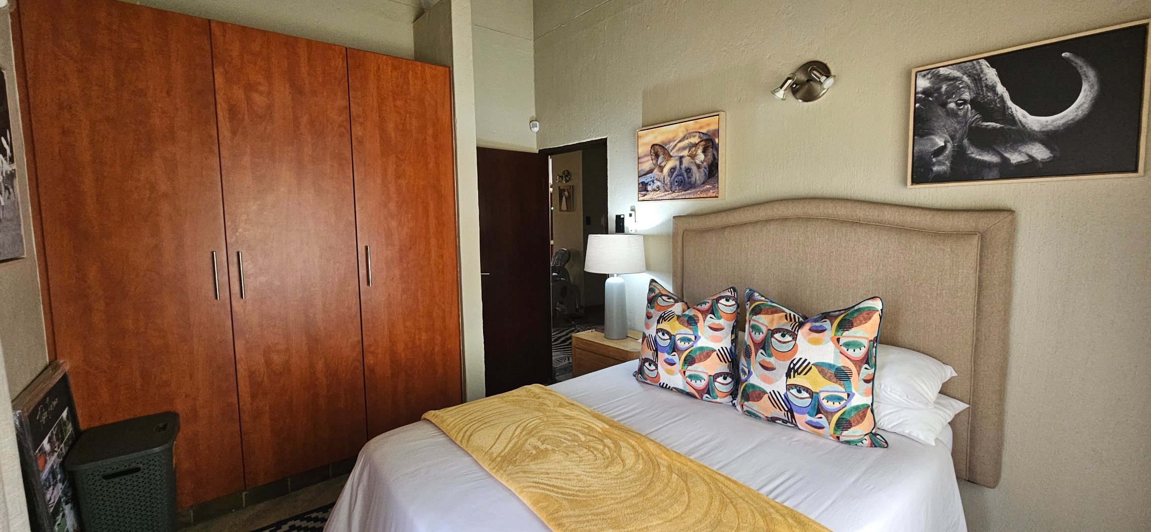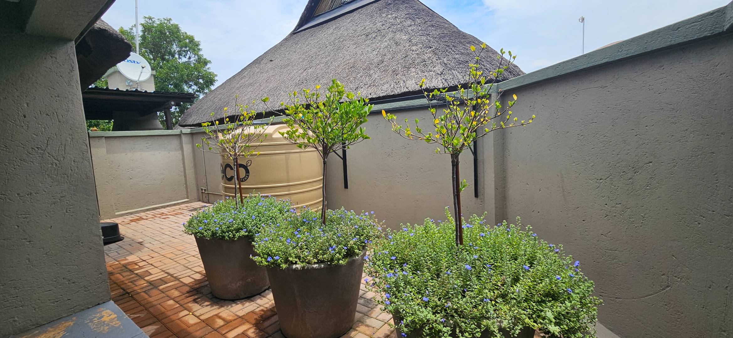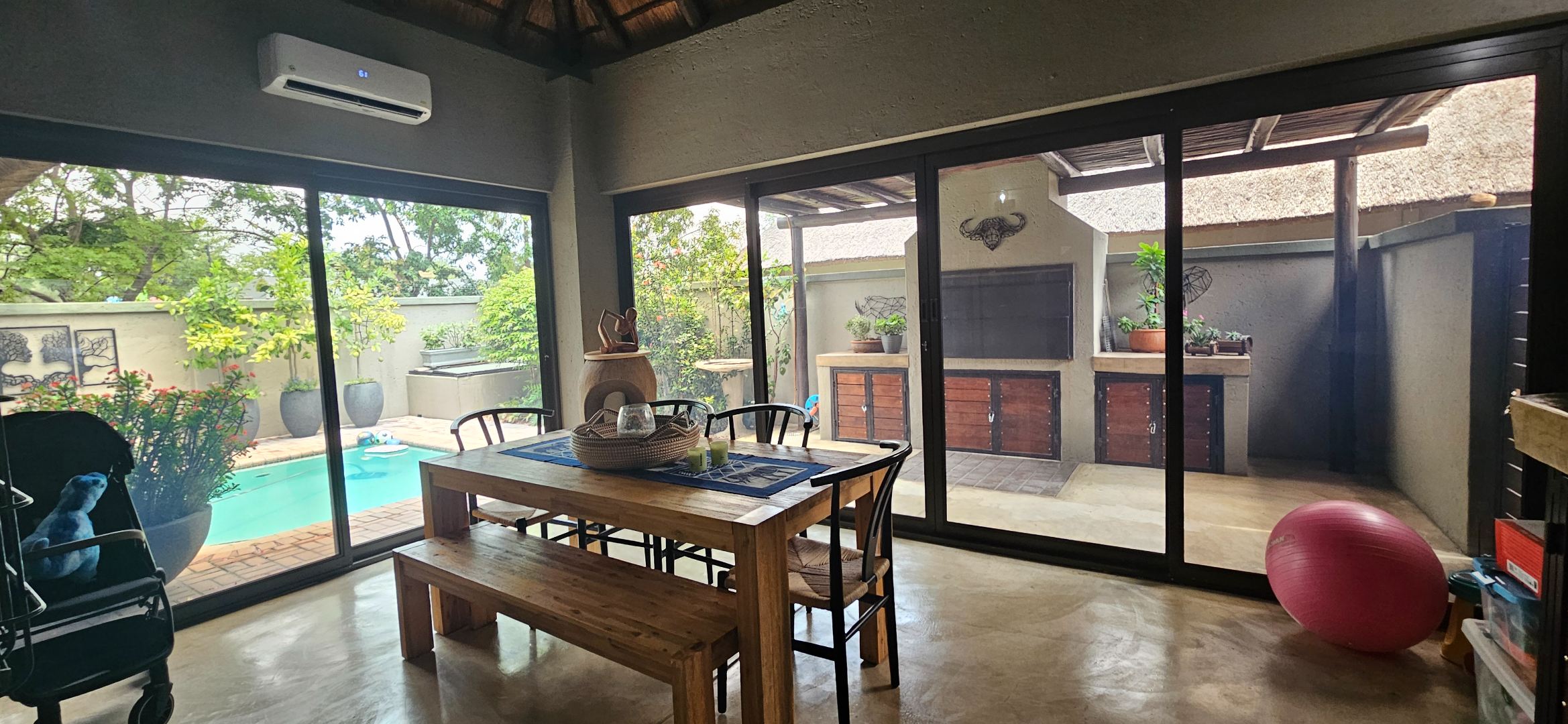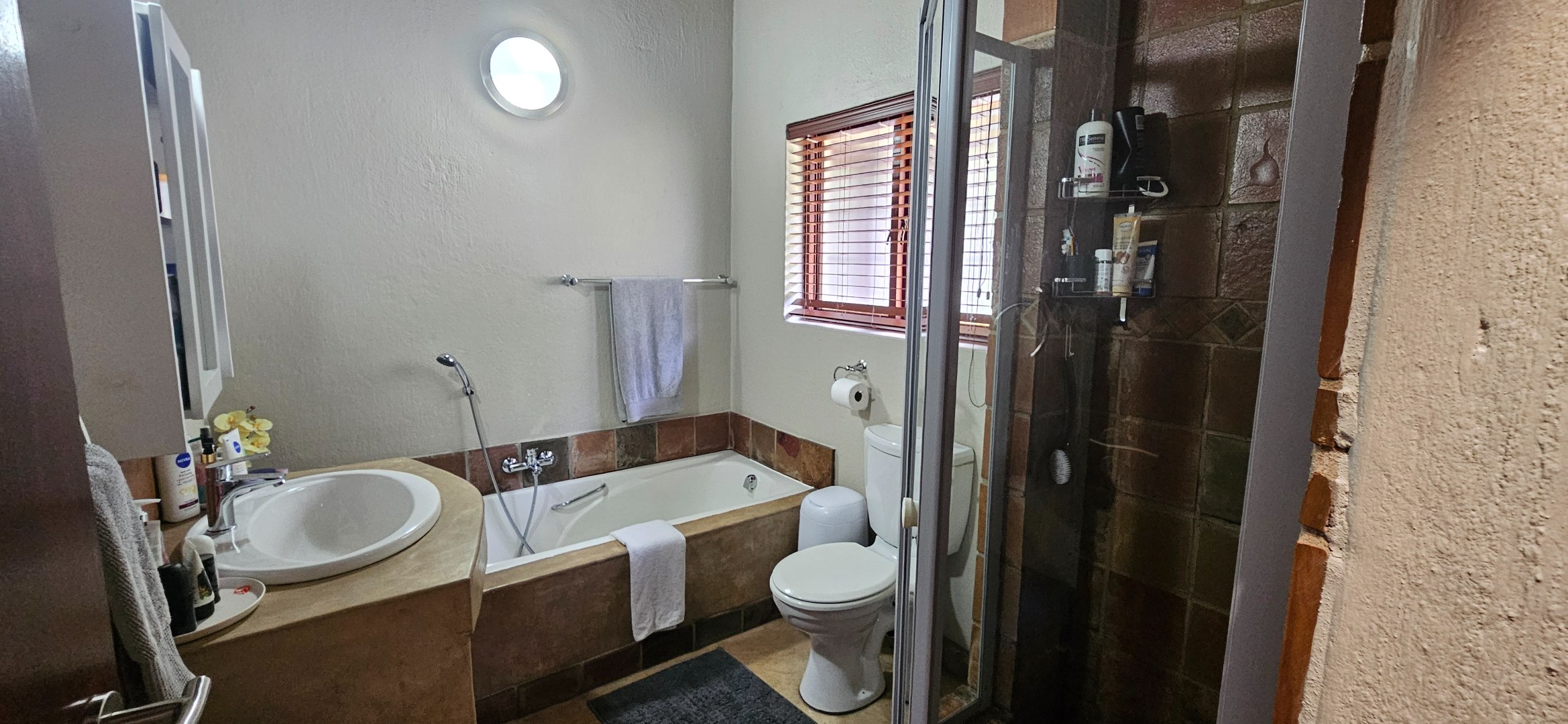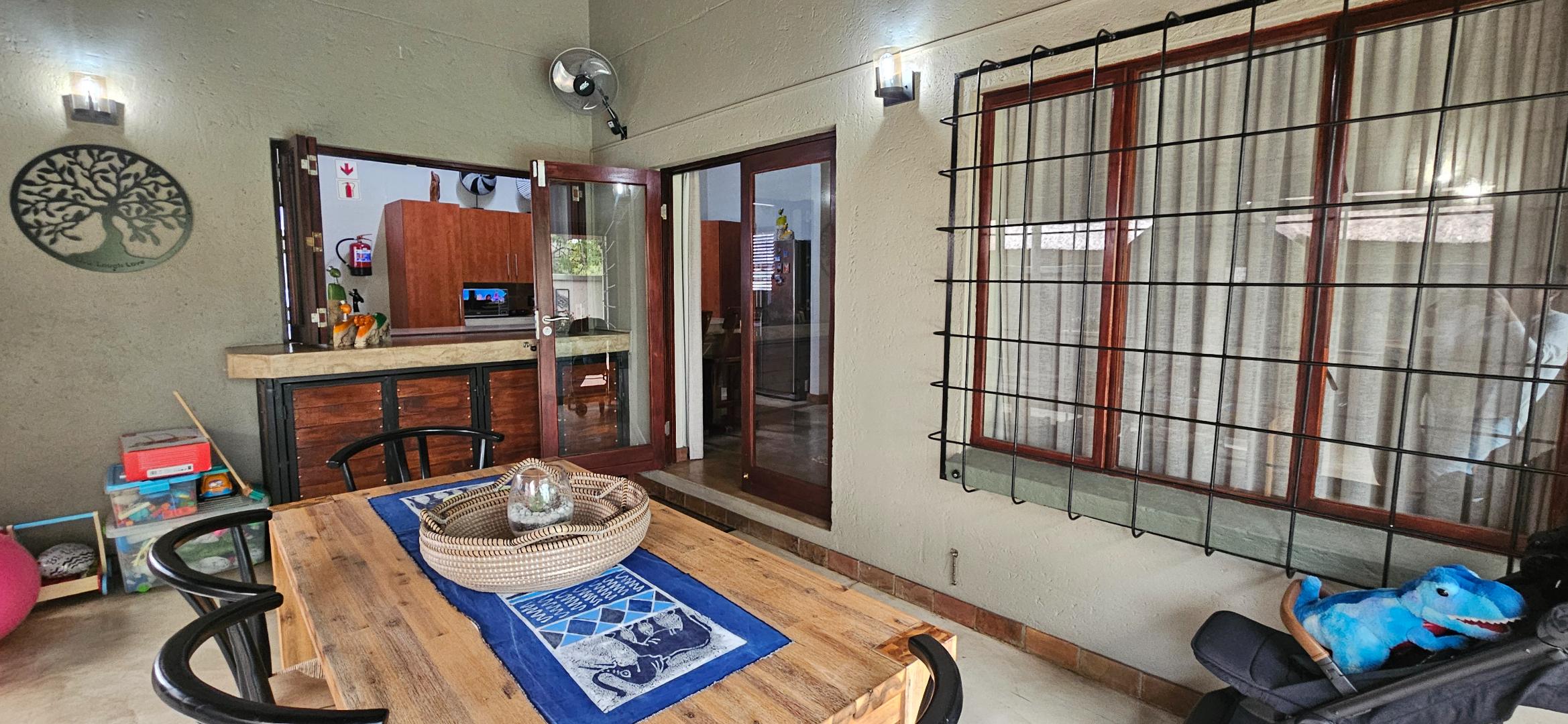 The outdoor area is perfect for relaxation and entertaining, featuring a private garden, a sparkling pool, and a patio with a built-in braai, making this an ideal family retreat. For peace of mind, the home is equipped with an access gate, alarm system, and electric fencing. Sustainability features include a battery inverter for power backup, water tanks, and an irrigation system, ensuring comfort and efficiency.