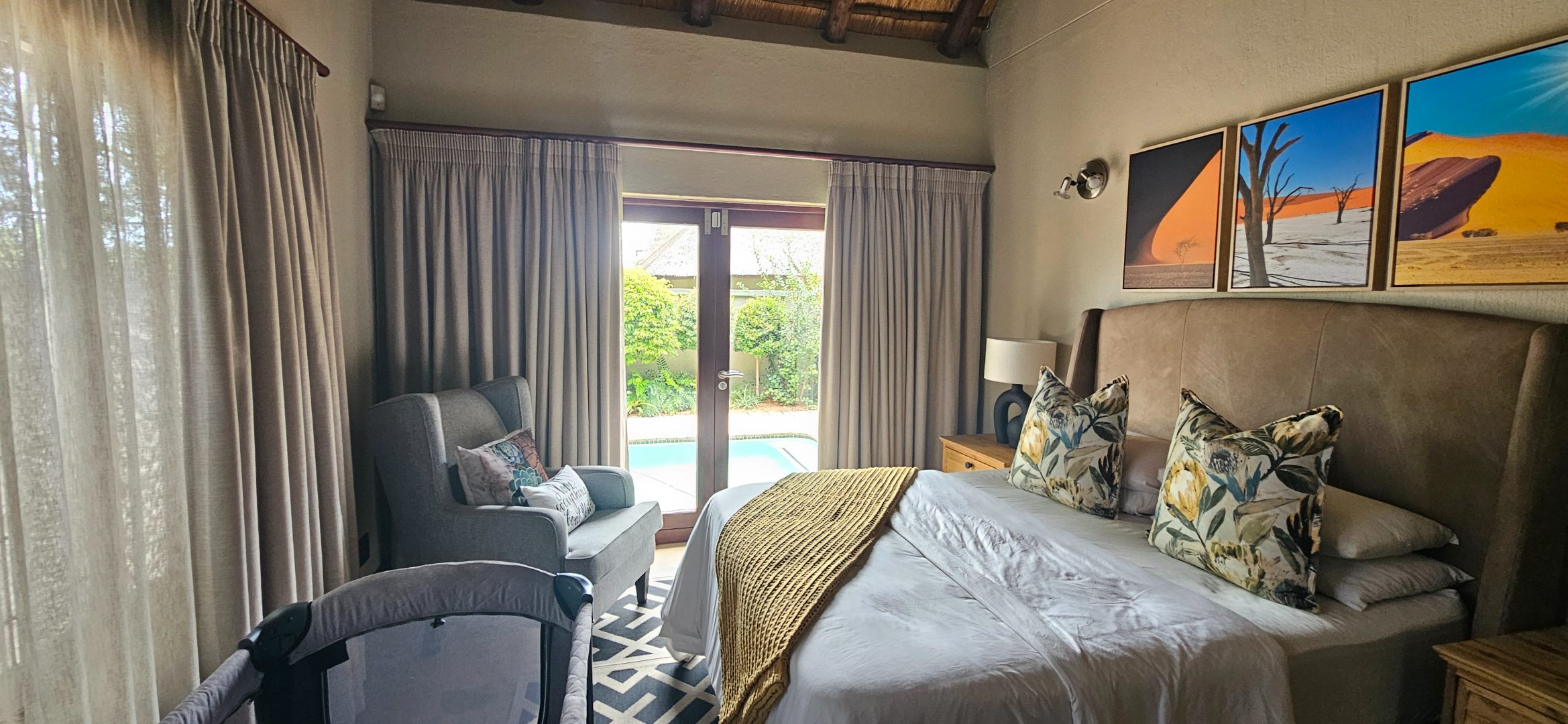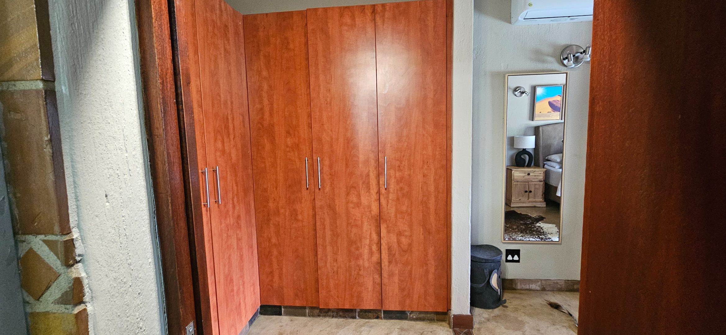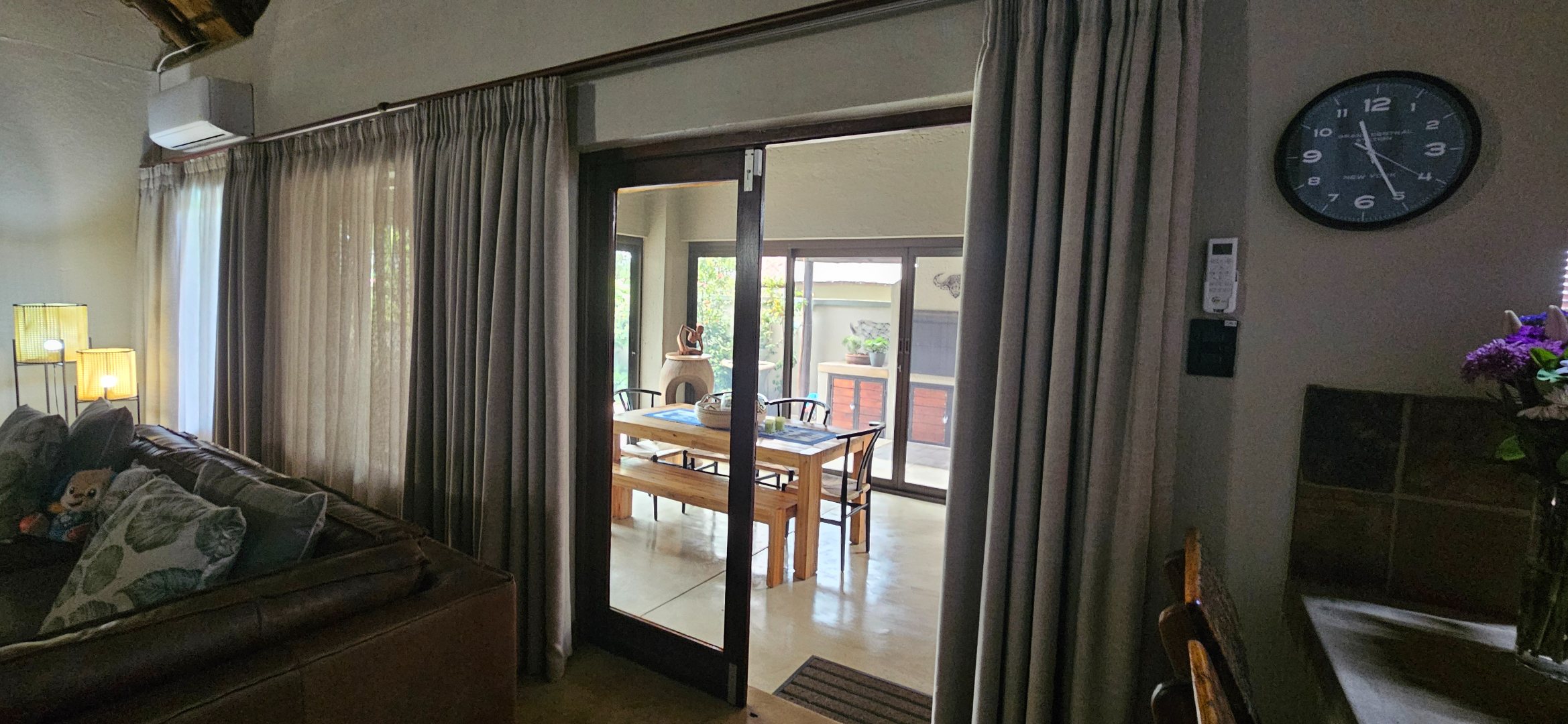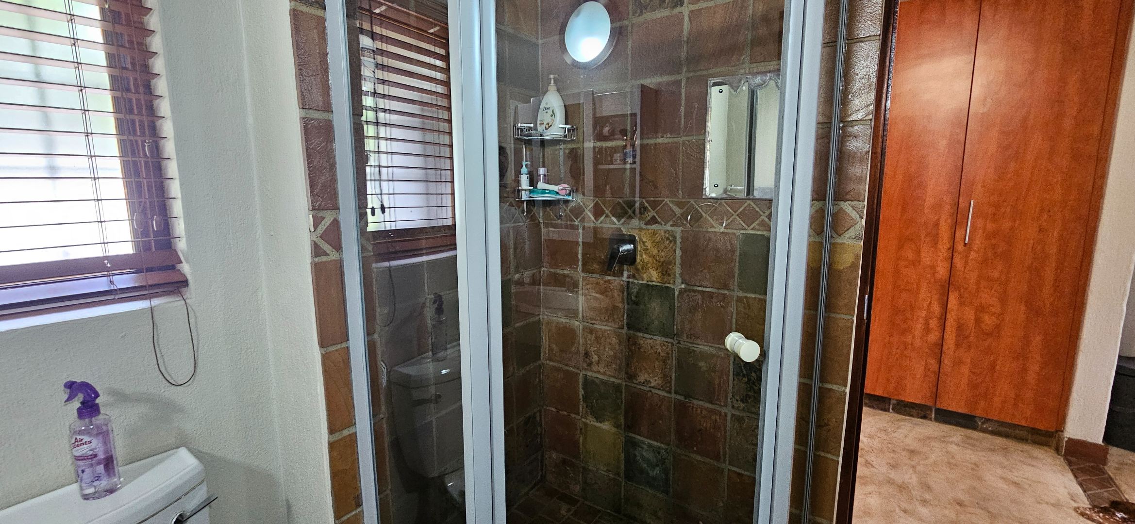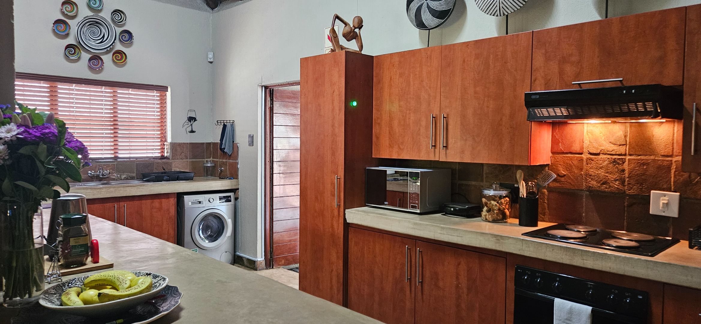 The outdoor area is perfect for relaxation and entertaining, featuring a private garden, a sparkling pool, and a patio with a built-in braai, making this an ideal family retreat. For peace of mind, the home is equipped with an access gate, alarm system, and electric fencing. Sustainability features include a battery inverter for power backup, water tanks, and an irrigation system, ensuring comfort and efficiency.