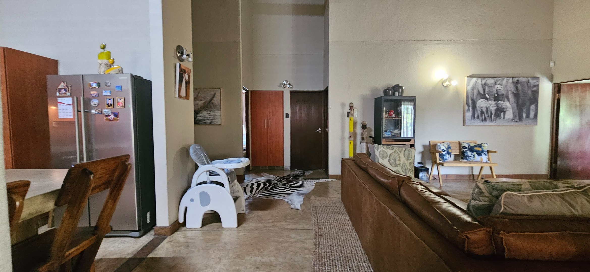 Discover this inviting 3-bedroom, 2-bathroom family home in Phalaborwa, a vibrant town renowned for its proximity to the Kruger National Park and rich natural surroundings. The property presents attractive kerb appeal with a covered driveway, sturdy wooden entrance gate, and vibrant landscaping, all secured with window bars.