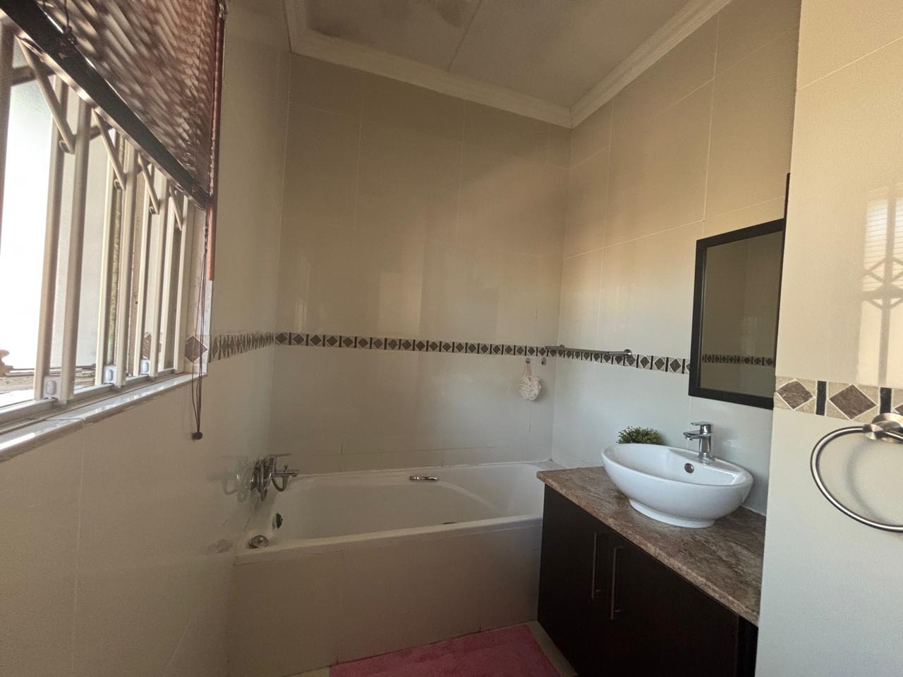 This home is equipped with advanced security and sustainability features, including a robust 16x 590 Canadian solar panels and a 10 kW Sunsynk inventor, 16kWh Sunsynk battery inverter system for energy independence. Security is paramount with an alarm system, electric fencing, CCTV, Trellidoor burglar bars, surrounding walls and motorized security gates. Parking is generous, offering two motorized garages and six additional open parking spaces for visitors. Practical additions include domestic room, a laundry room near the kitchen, storage, and a Wendy house, ensuring every need is met. Wi-Fi connectivity is also available.