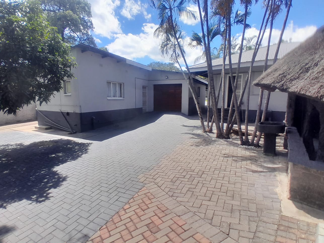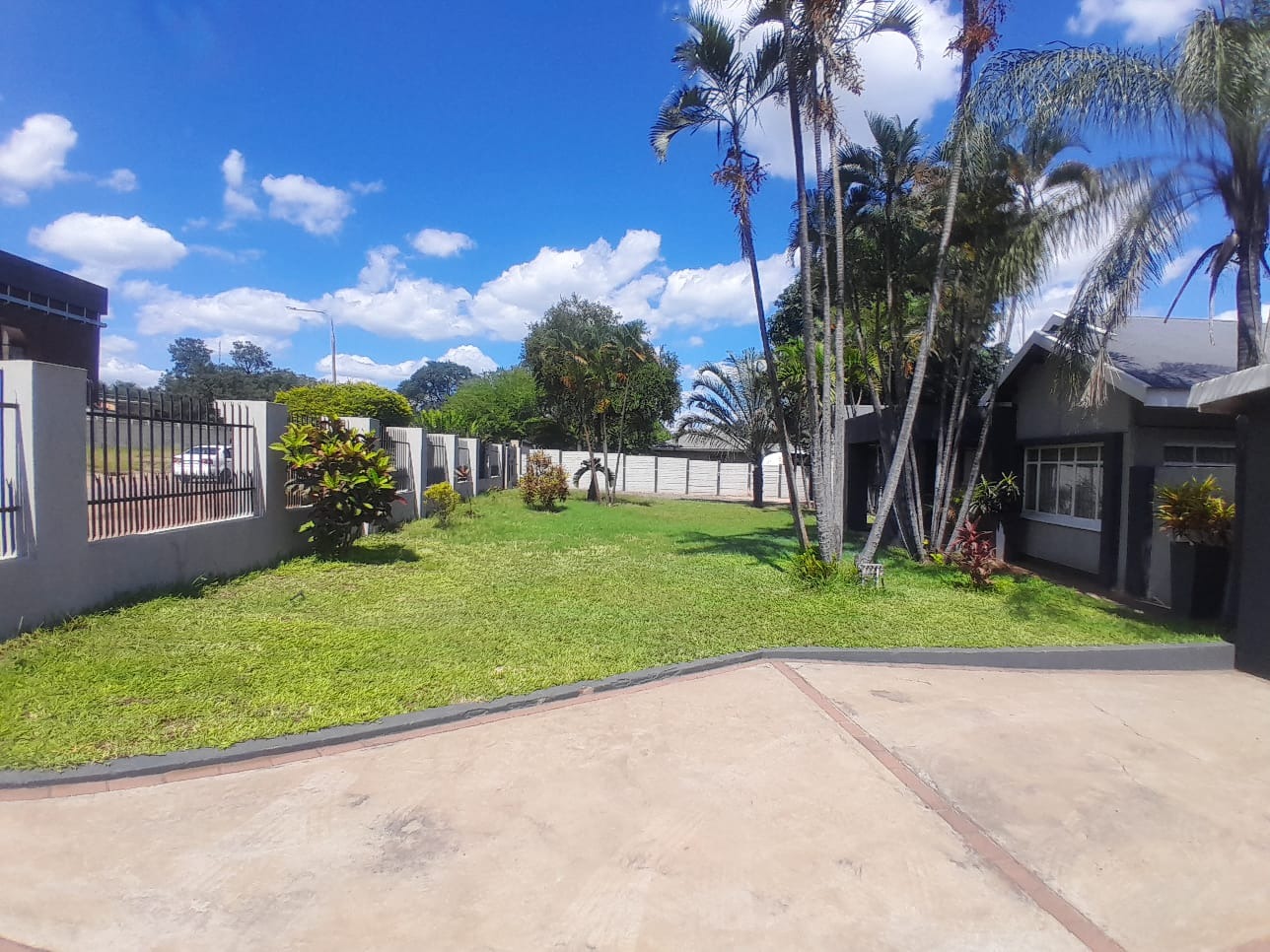 Welcome to this breathtaking property perfectly situated on 1636m2 land, ideal for outdoor activities or future expansion, on a desirable area with easy access to shops, restaurants and offices. It is perfect for families or individuals seeking space and security. Private and secure, discover this exceptional four-bedroom, three-bathroom residence located in the vibrant city of Phalaborwa. This modern single-story home immediately impresses with its contemporary grey and dark grey exterior, complemented by a well-maintained, lush green lawn and mature palm trees that add a tropical aesthetic. A clean concrete driveway leads to the entrance, setting a welcoming tone for this secure property.