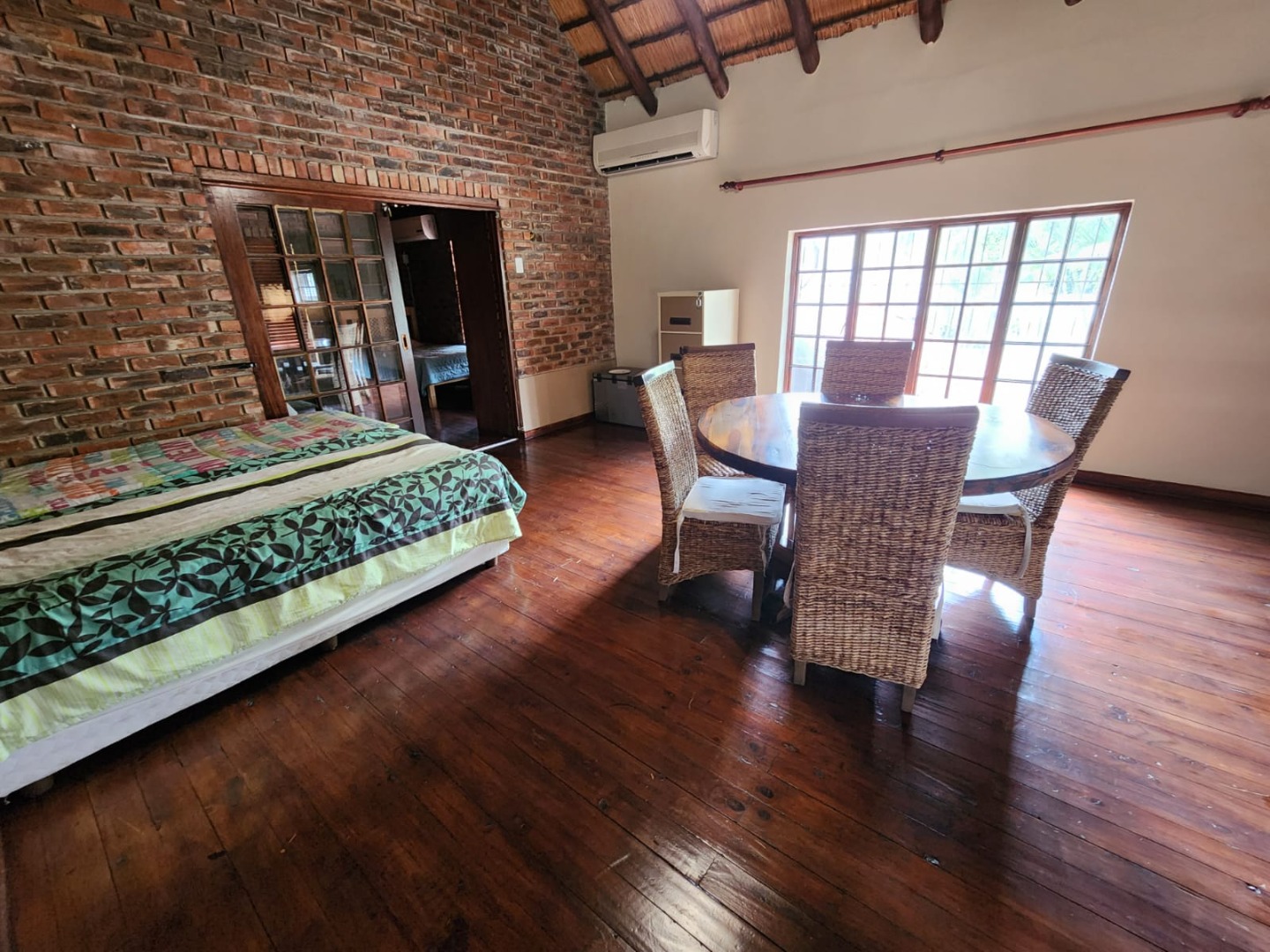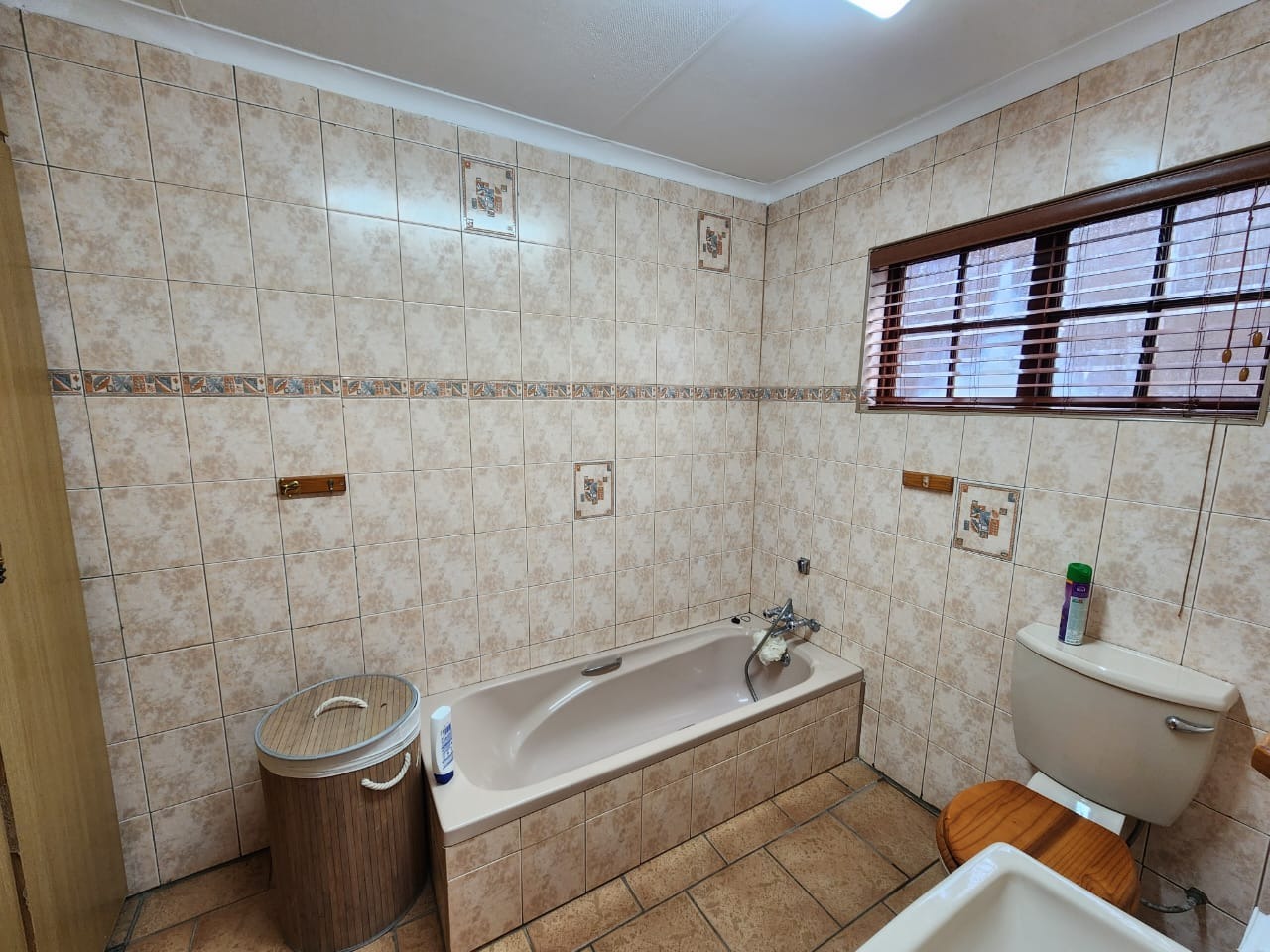 This beautiful double-story face brick home perfectly blends style, comfort, and functionality. It features a stunning kitchen with sleeper-wood cabinets, a gas stove, a double oven, a separate scullery, and a pantry. The home includes five generously sized bedrooms, all equipped with built-in cupboards and air conditioning. Three of the bedrooms offer en-suite bathrooms, while one can easily be converted into a study. Enjoy relaxed living in the spacious lounge and TV room, which opens onto a lovely patio ideal for entertaining. Upstairs, you will find a dining room and a cozy entertainment area.