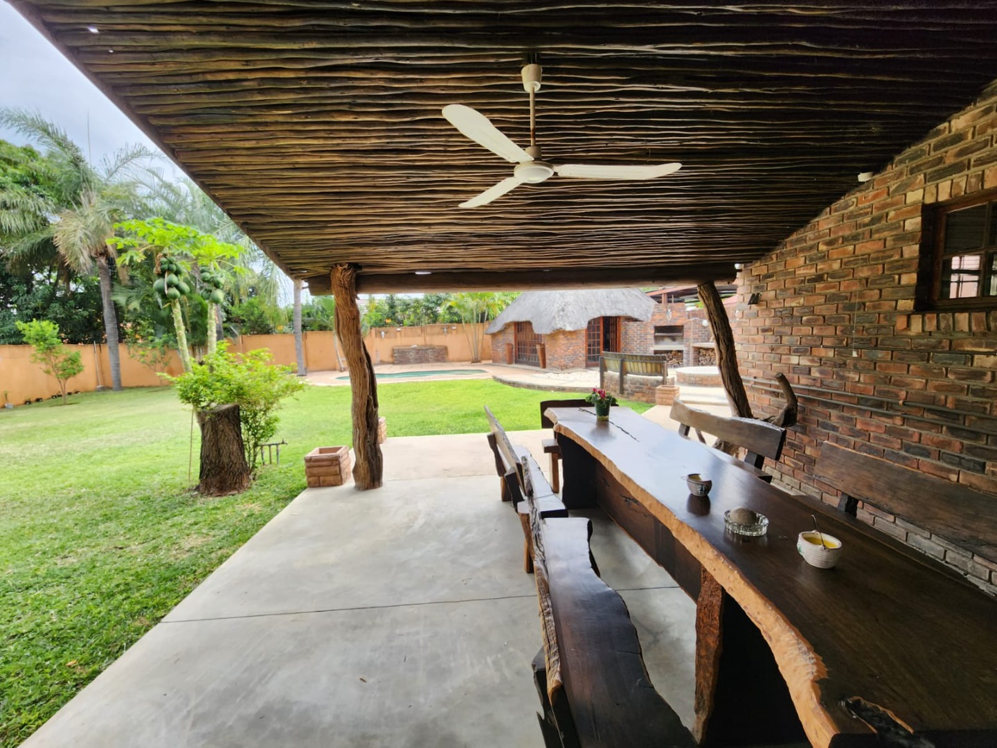 Step outside to a well-maintained garden that boasts a sparkling pool, an enclosed lapa, and a boma braai area—perfect for year-round outdoor living.