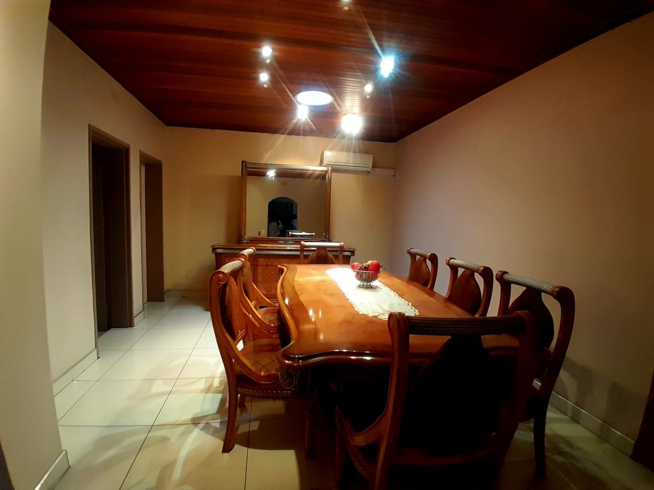 A beautiful crafted wooden ceiling adds warmth and character to the lounge and dining room. Stylish and elegant blinds that not only provide privacy but also enhance the appeal of the lounge with aluminum window frames. The dining was designed to be comfortable and inviting perfect for socializing. Additional 1 bedroom flatlet with a shower and toilet upstairs.