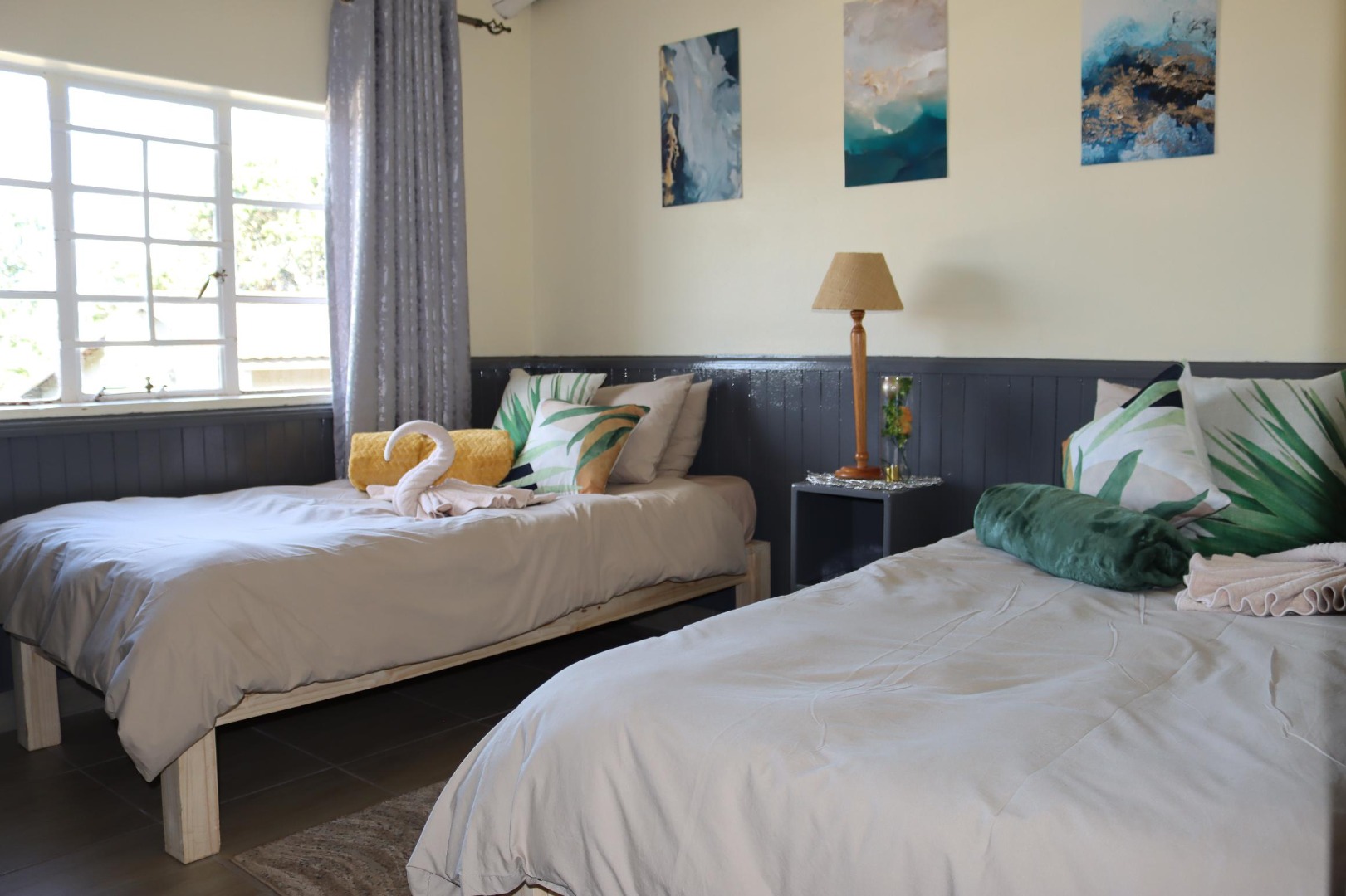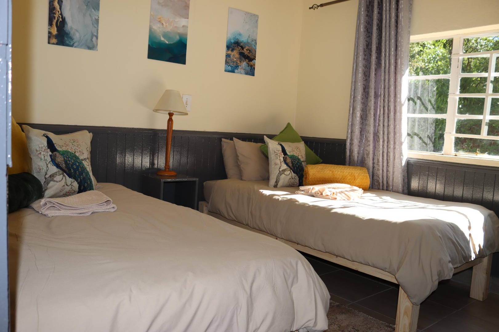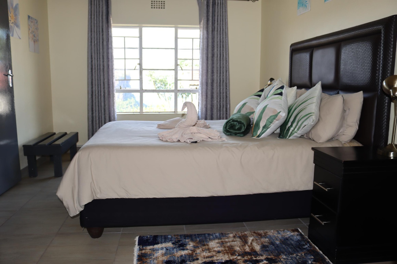 The residence offers three comfortable bedrooms, including one with an en-suite bathroom, and a total of two bathrooms. Each bedroom benefits from ample natural light and features tiled flooring, providing a clean and inviting atmosphere suitable for family living or guest accommodation.