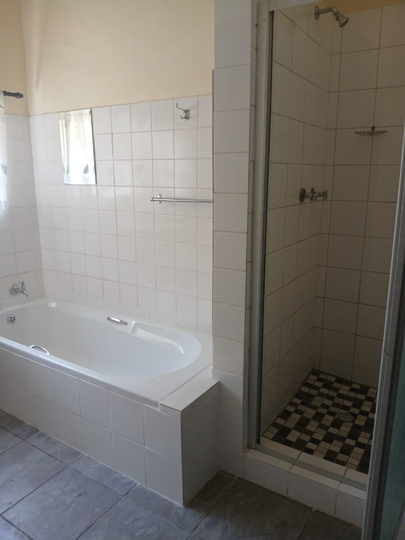 Step outside to discover exceptional outdoor living spaces, including a covered patio and deck, perfect for relaxation and entertaining. The built-in braai area is ideal for social gatherings, while the garden and pool offer opportunities for outdoor enjoyment. With two dedicated parking spaces, convenience is assured.