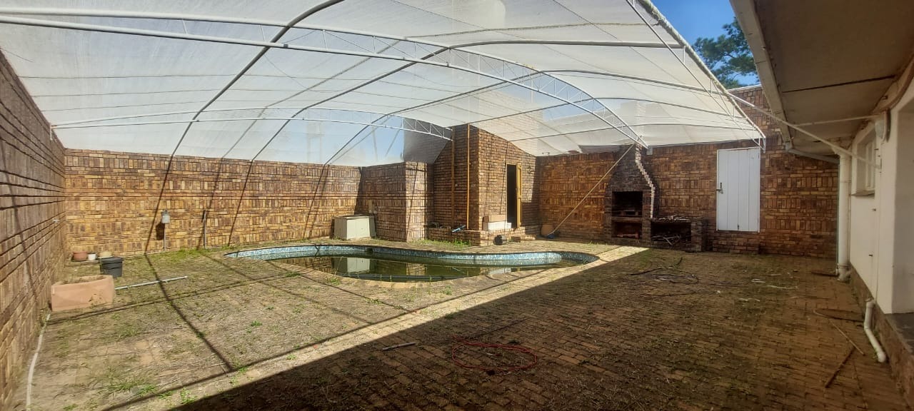 Security is a key feature, with burglar bars, security gates, an alarm system, and perimeter fencing secured by an electric gate, ensuring peace of mind. For those who enjoy entertaining or relaxing outdoors, the property includes a large enclosed braai area and a swimming pool—an ideal setting for family gatherings or quiet evenings.