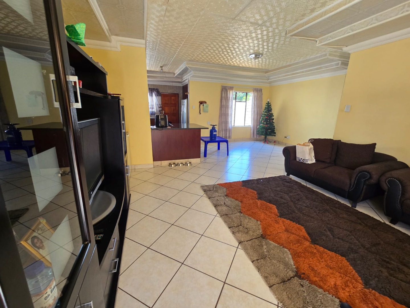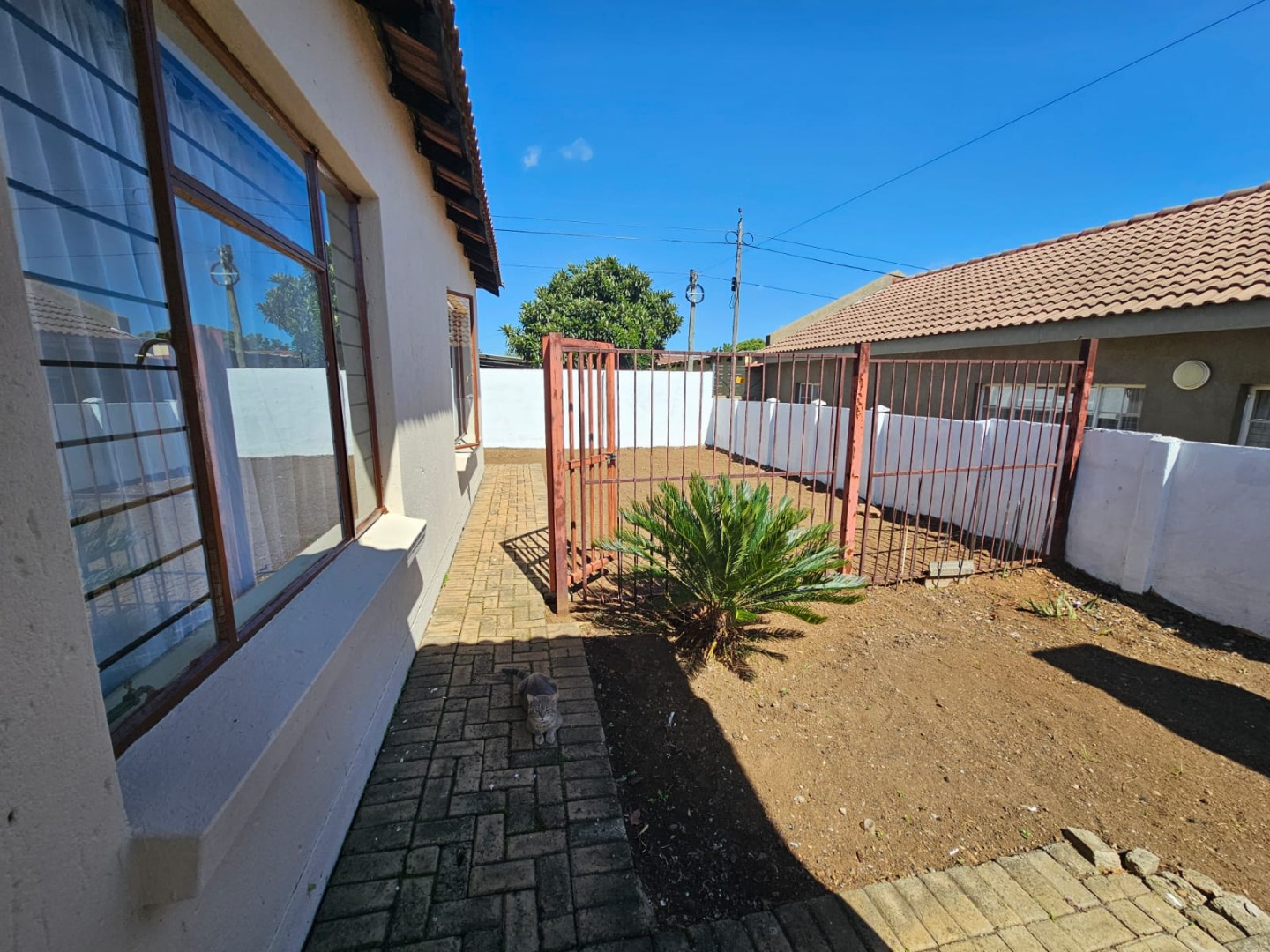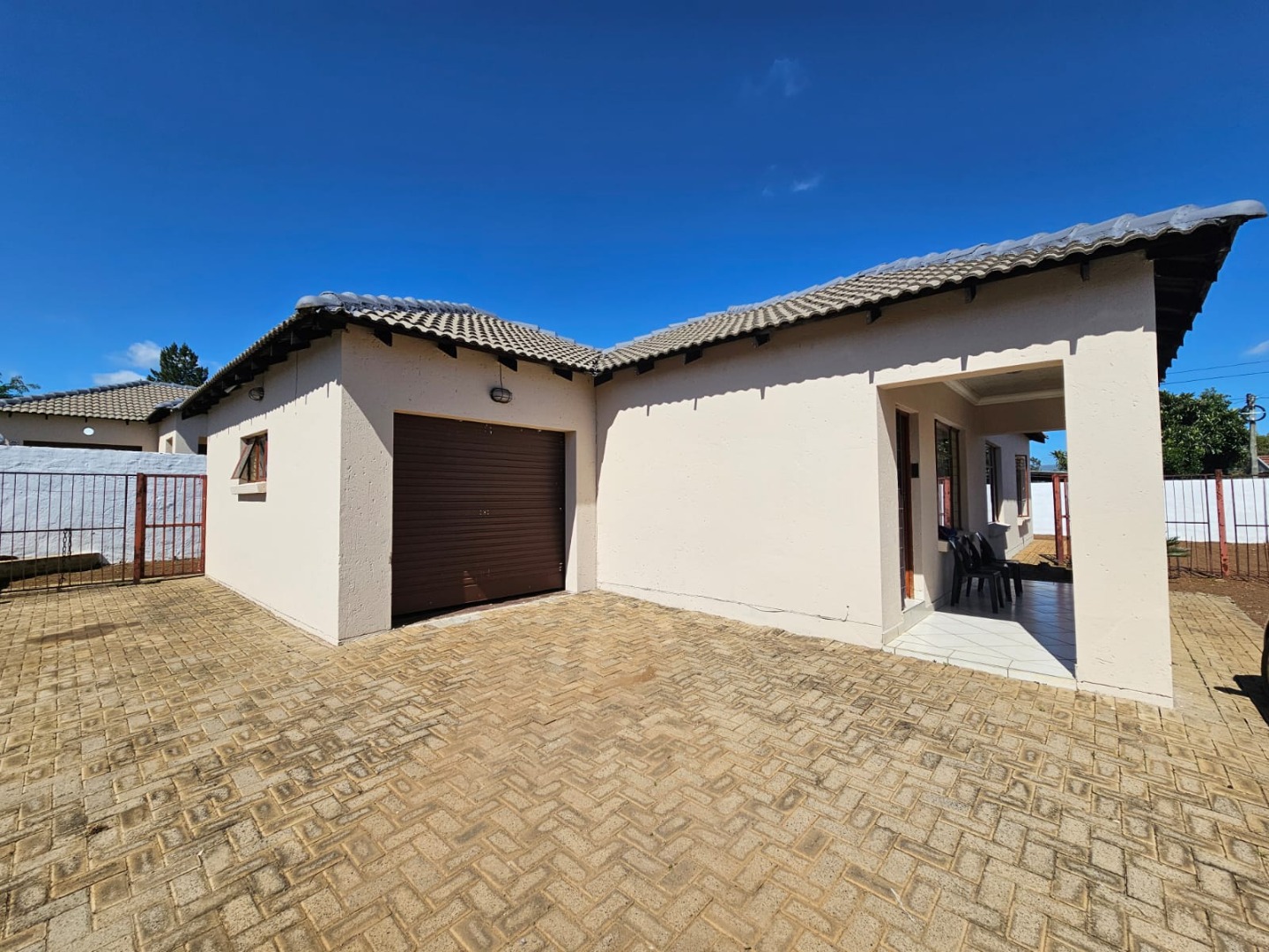 This inviting 3-bedroom, 2-bathroom residential property in Lydenburg, South Africa, offers comfortable living on a generous 685 sqm erf. The home presents a well-maintained exterior with a light-colored facade, a dark tiled roof, and an integrated single garage. A covered front porch provides a welcoming entry, while the fully paved driveway and front yard ensure low maintenance and ample parking for two vehicles. The property is secured by a perimeter fence and a visible metal gate, enhancing kerb appeal and peace of mind.