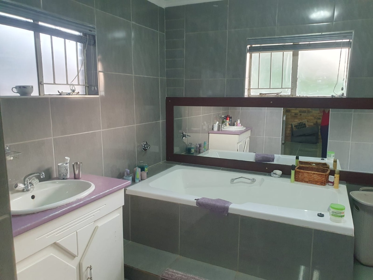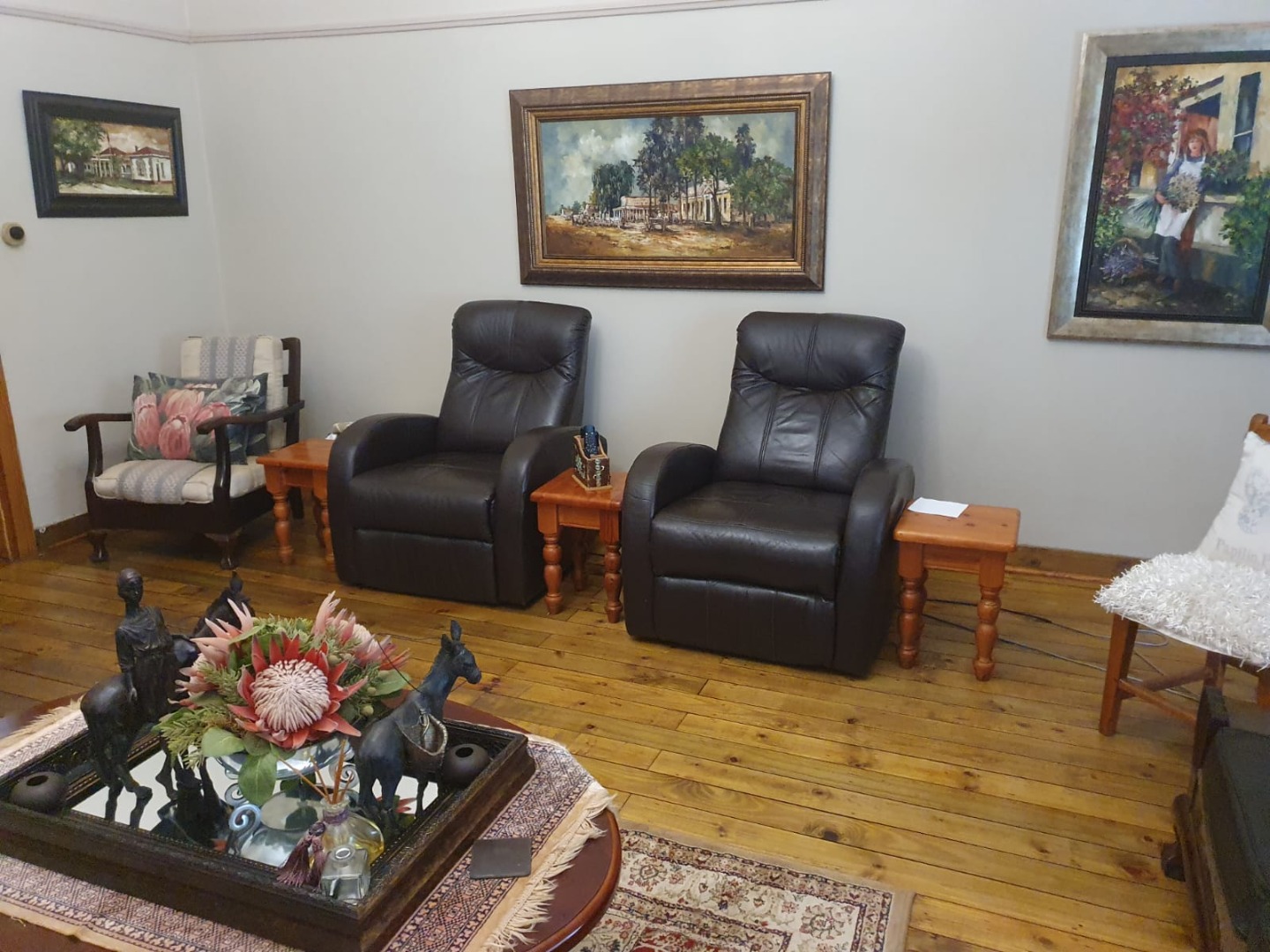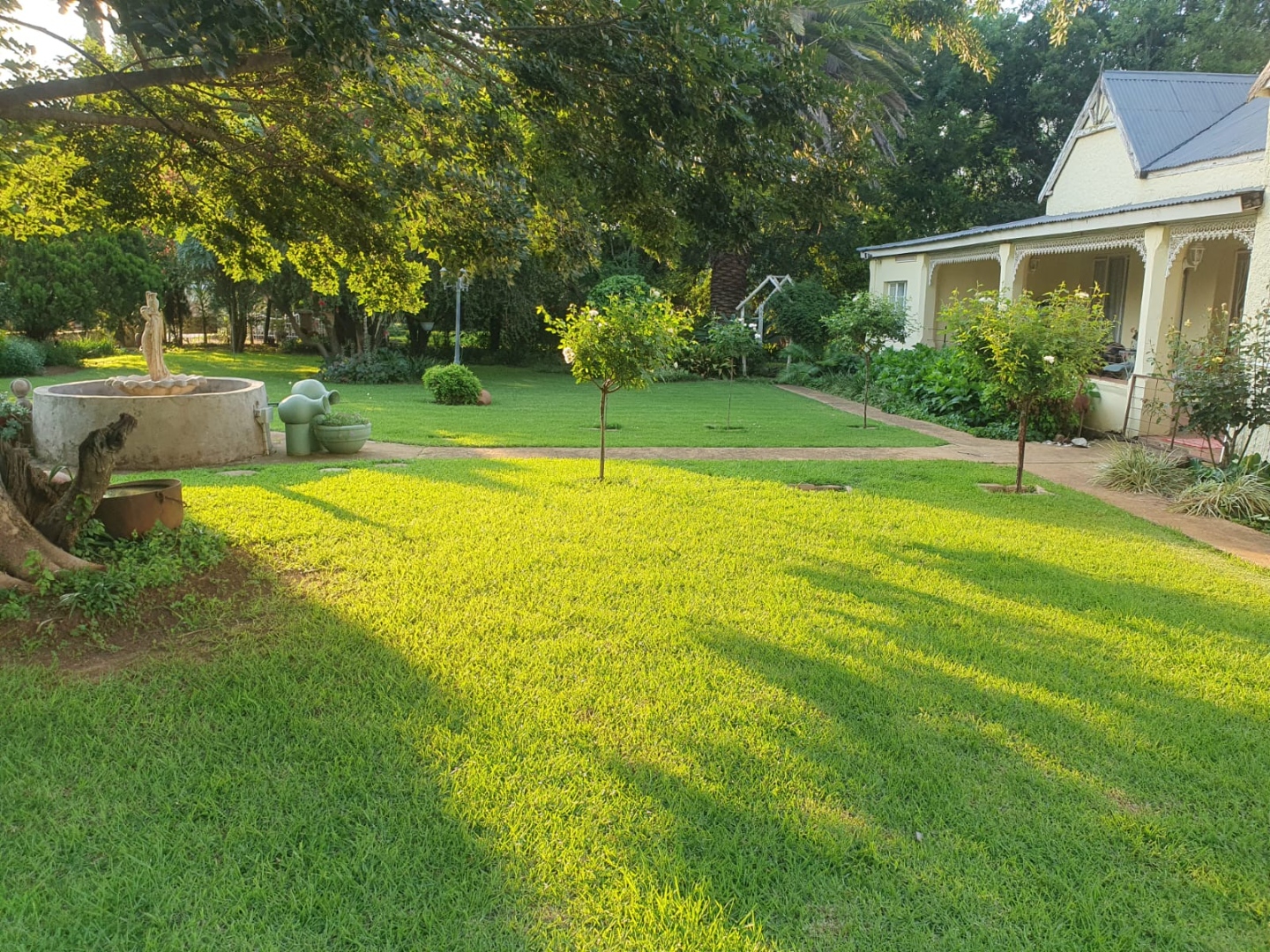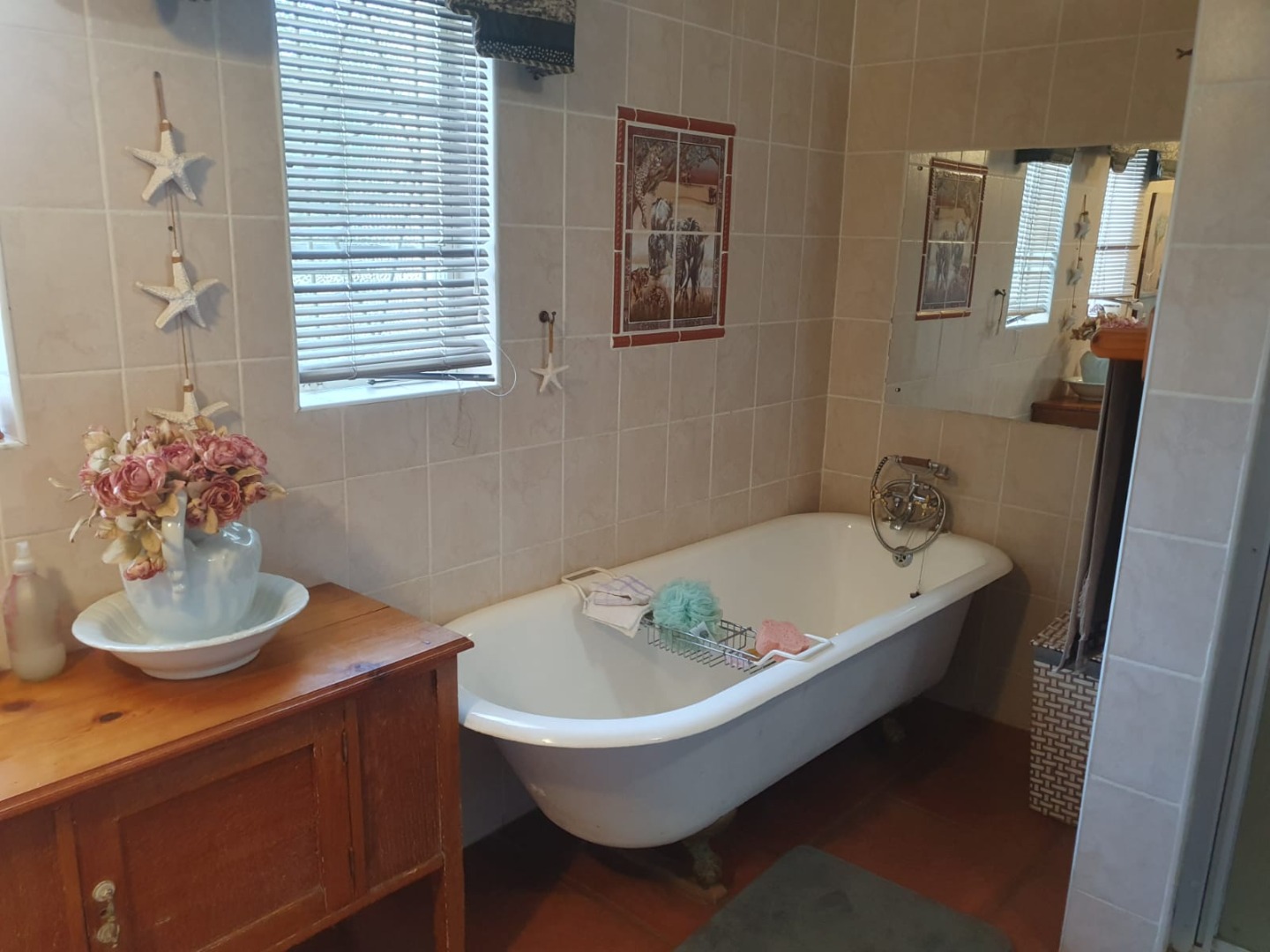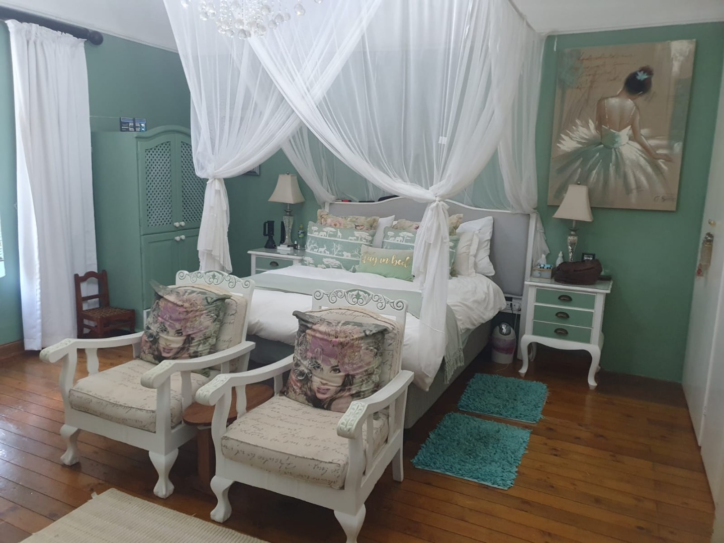 The second house on the property is equally charming. The bright and airy dining room is filled with natural light, complemented by sleek tiles throughout the space. The kitchen includes a gas stove and double oven, ideal for anyone who enjoys cooking. A lovely sunroom provides a peaceful retreat, while the second dining room features a coal oven, adding warmth and character to the space. The main bedroom offers built-in cupboards and an en-suite bathroom with his-and-hers basins, a corner bath, and a shower, creating a luxurious environment. The first guest bedroom has wooden floors and built-in cupboards, and the third bedroom is equipped with a ceiling fan for added comfort. The study, passage, and main lounge all feature beautiful wooden floors, adding warmth and elegance to the home. The shared guest bathroom includes an extractor fan, a gas geyser (250L), and a bath and shower.