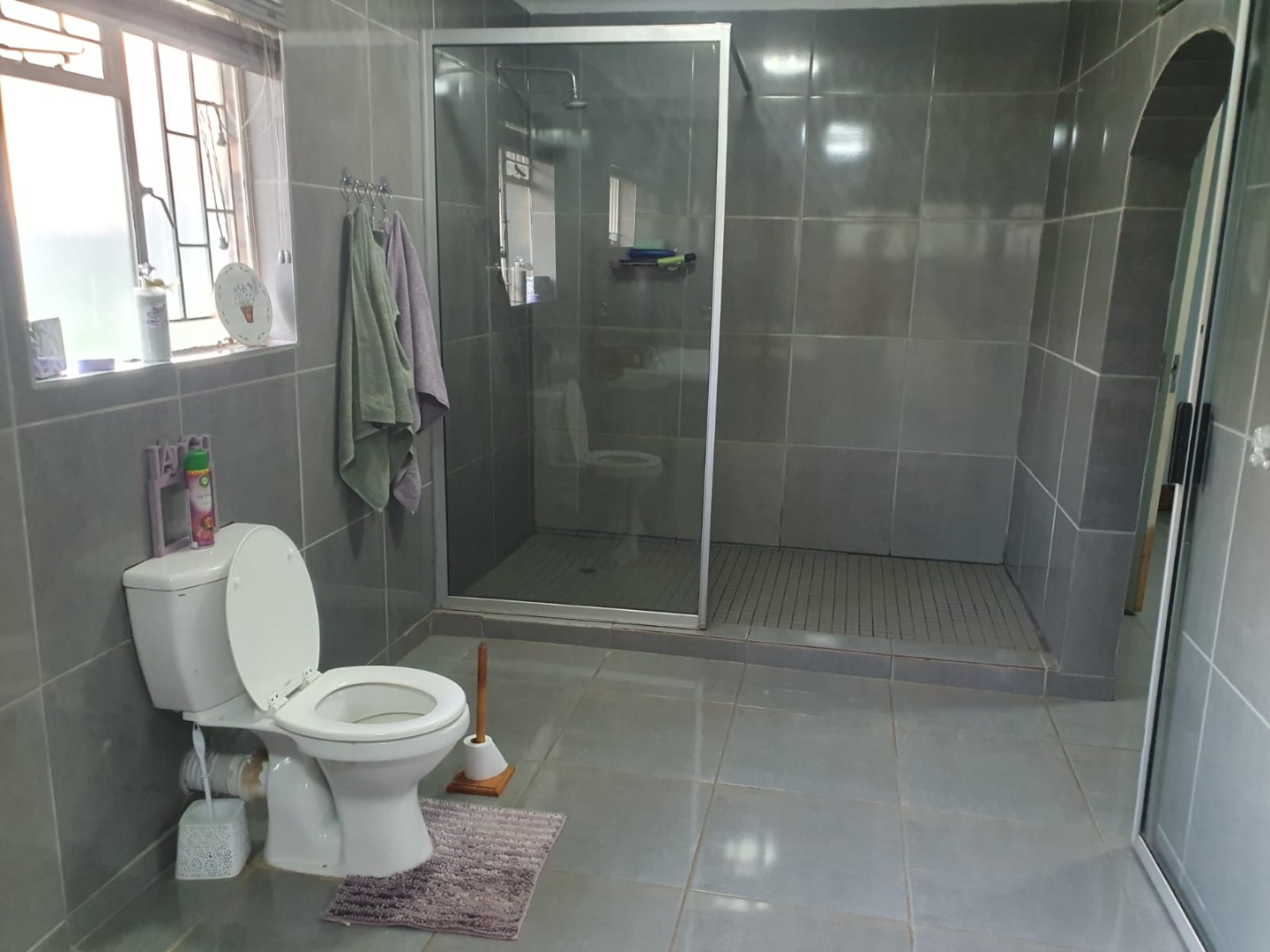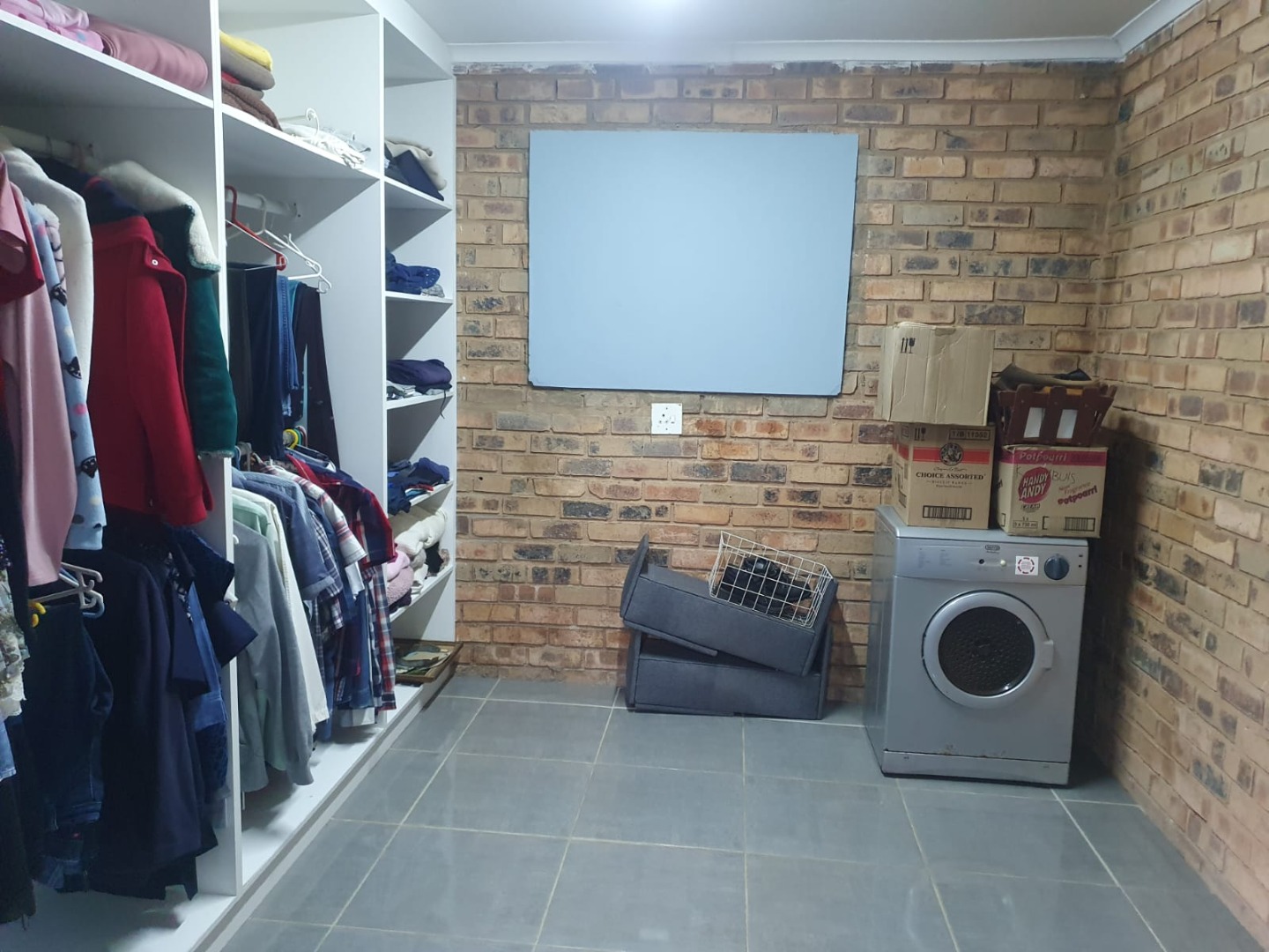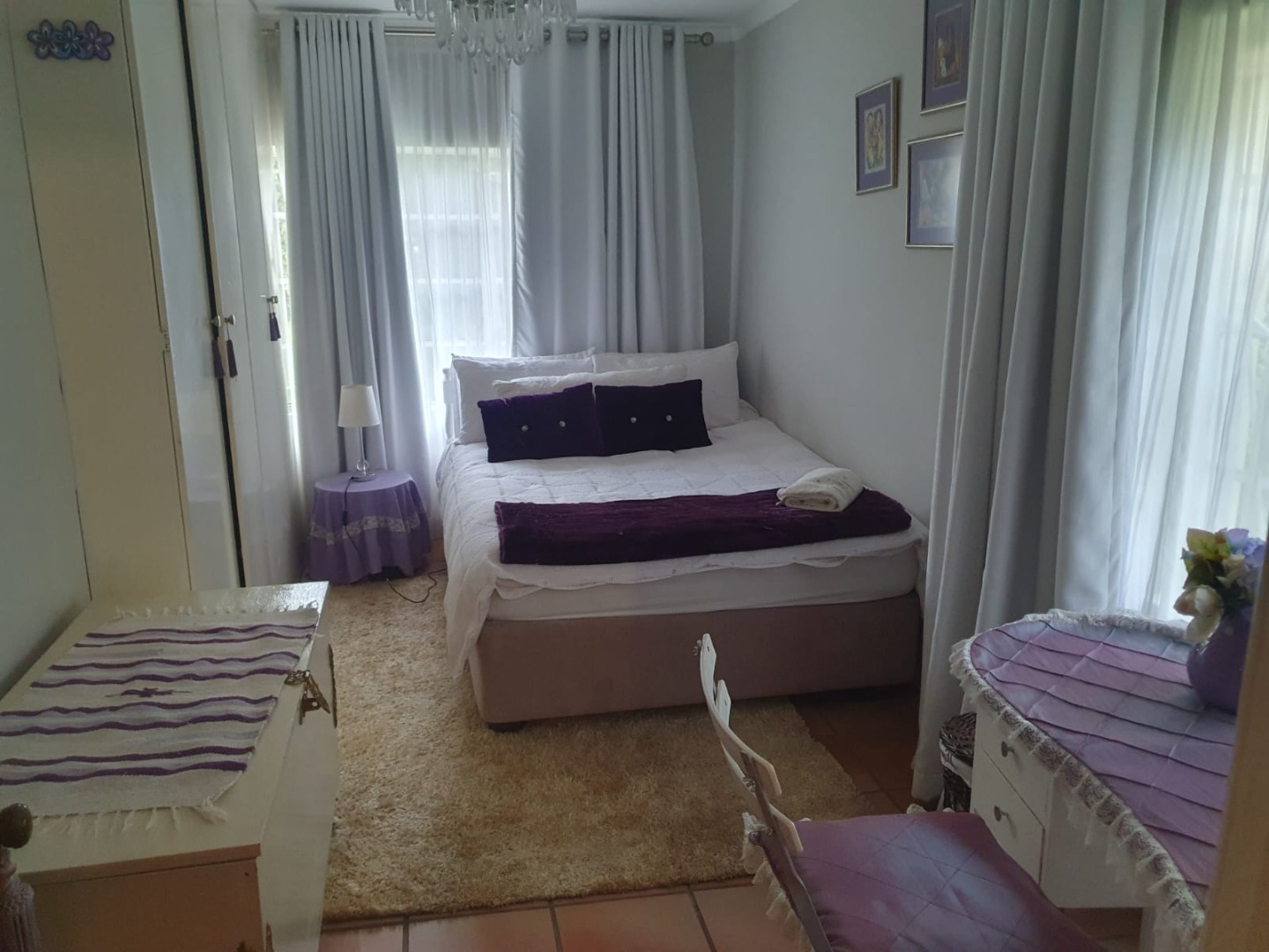 The main house is a spacious 3-bedroom home designed for comfort and convenience. The main bedroom includes a dressing room and an en-suite bathroom, providing a tranquil retreat. The open-plan dining room is enhanced with glass doors that lead to the outdoors, creating a seamless flow between indoor and outdoor living. The kitchen is well-equipped with built-in cupboards, a gas stove, and an electric oven, making it perfect for preparing family meals. The lounge offers a cozy space for relaxation, and the patio is ideal for entertaining. The first bedroom also features glass doors leading outside, while the second bedroom includes built-in cupboards. The shared bathroom is fitted with a shower, bath, and a walk-in closet, providing plenty of storage space. The home is equipped with both a gas geyser and an electric geyser, ensuring reliable hot water throughout the year.