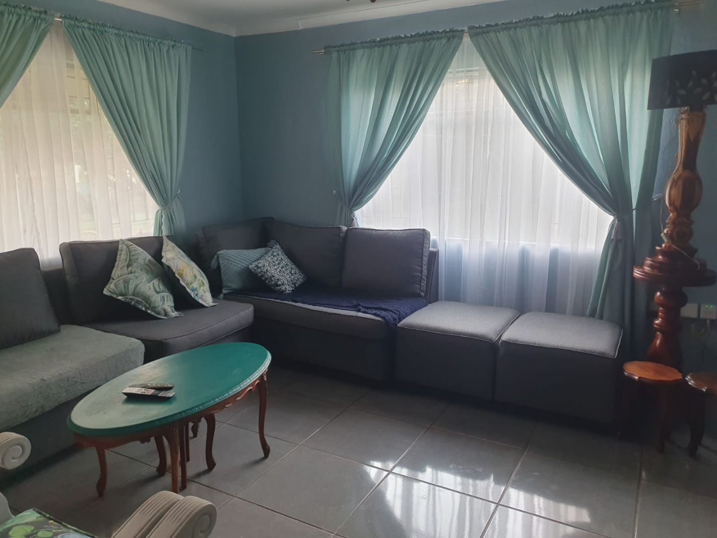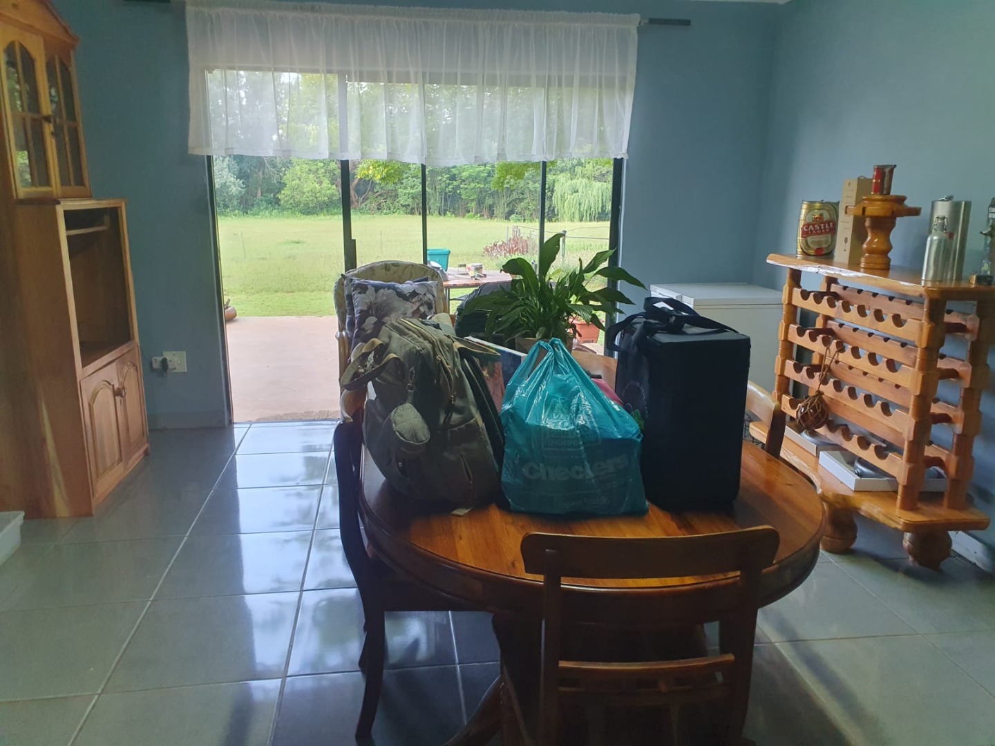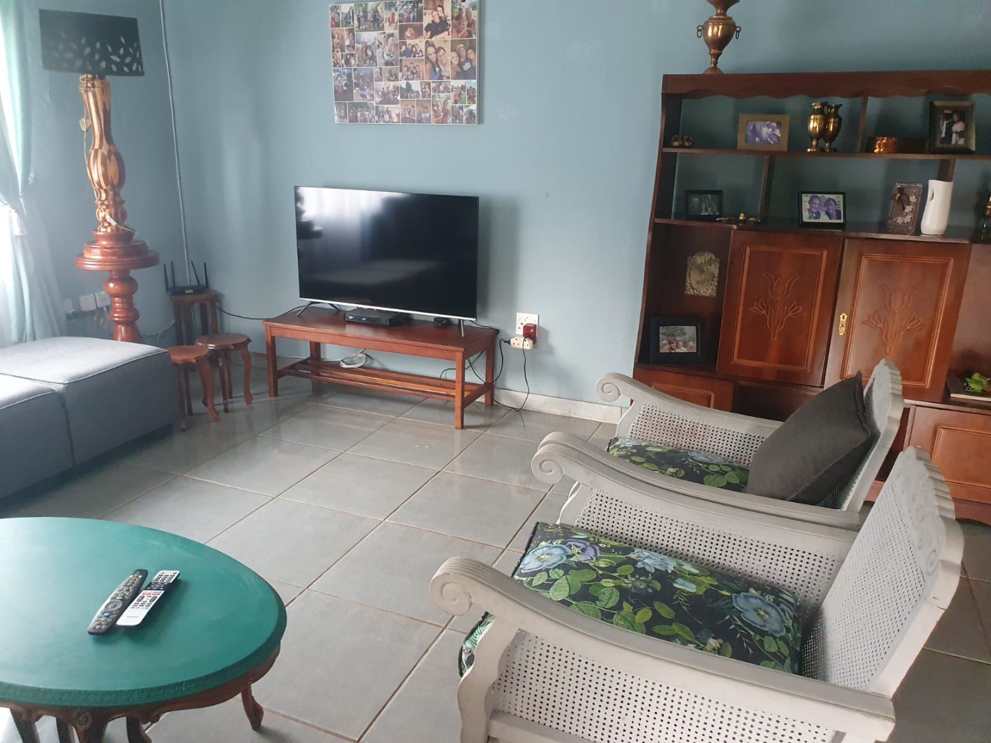 The main house is a spacious 3-bedroom home designed for comfort and convenience. The main bedroom includes a dressing room and an en-suite bathroom, providing a tranquil retreat. The open-plan dining room is enhanced with glass doors that lead to the outdoors, creating a seamless flow between indoor and outdoor living. The kitchen is well-equipped with built-in cupboards, a gas stove, and an electric oven, making it perfect for preparing family meals. The lounge offers a cozy space for relaxation, and the patio is ideal for entertaining. The first bedroom also features glass doors leading outside, while the second bedroom includes built-in cupboards. The shared bathroom is fitted with a shower, bath, and a walk-in closet, providing plenty of storage space. The home is equipped with both a gas geyser and an electric geyser, ensuring reliable hot water throughout the year.