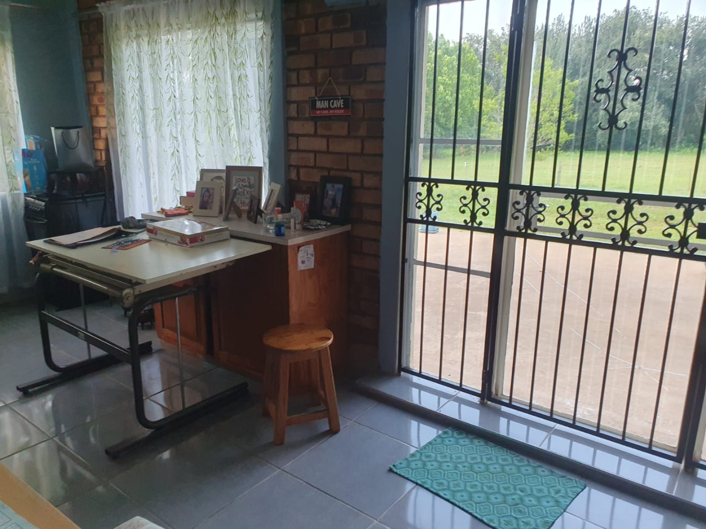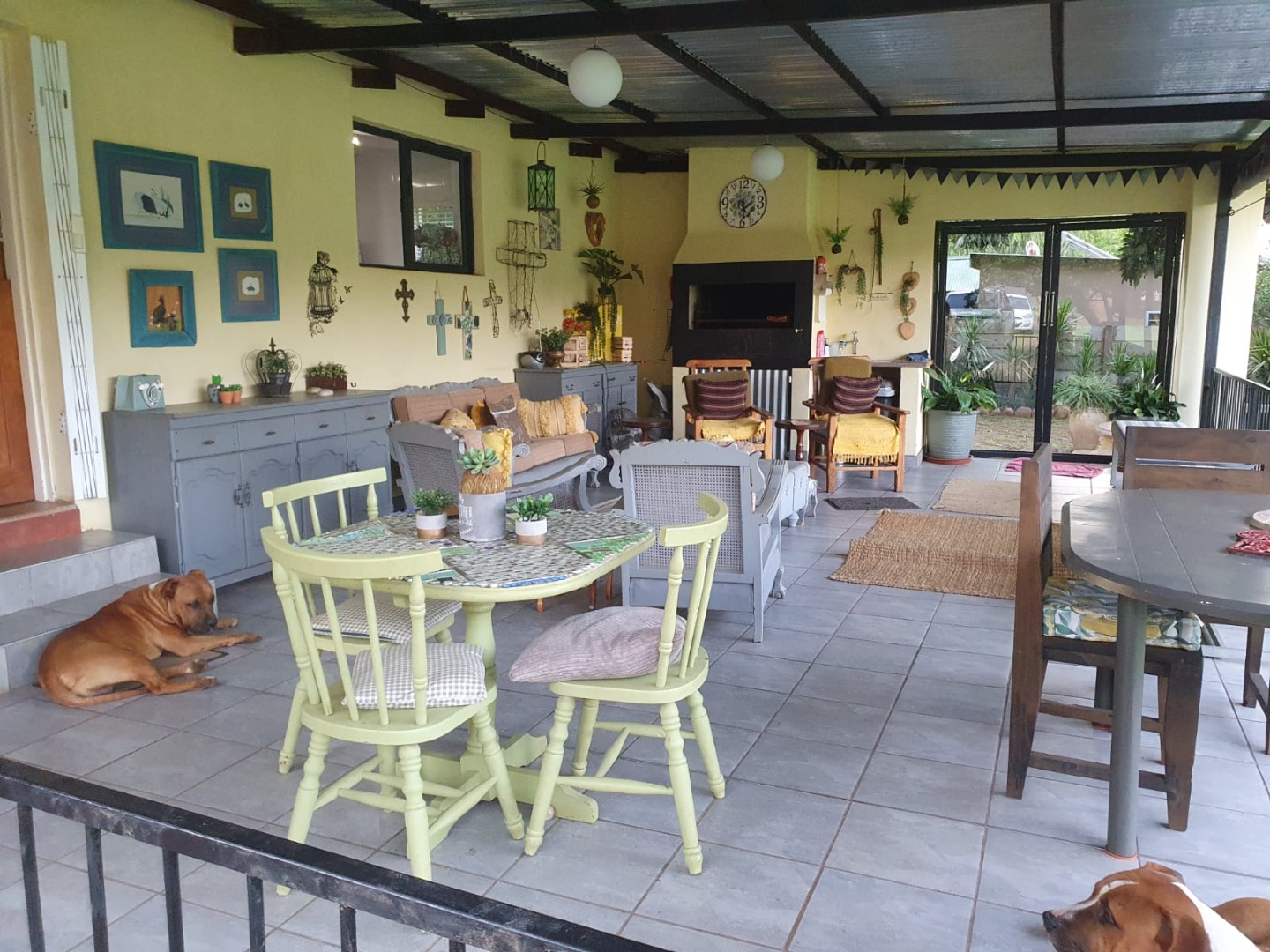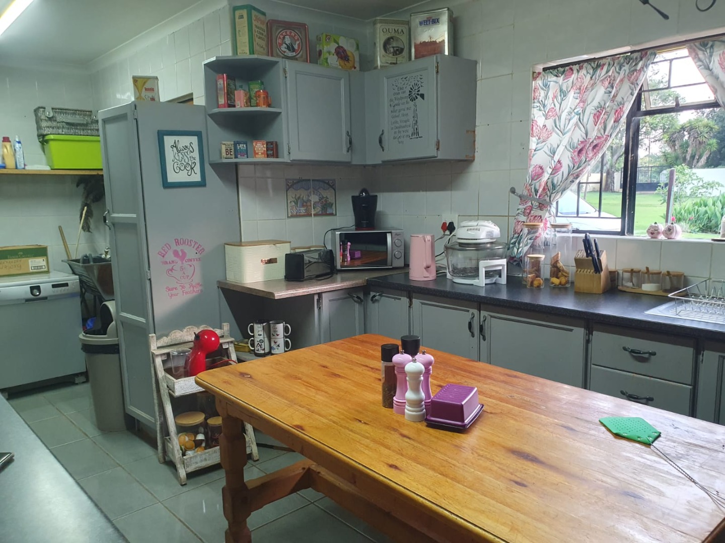 The expansive grounds include an outdoor patio, perfect for alfresco dining and entertaining. The built-in braai with a basin adds convenience, while the glass doors leading outside provide easy access to the outdoors, making it an ideal spot for gatherings.