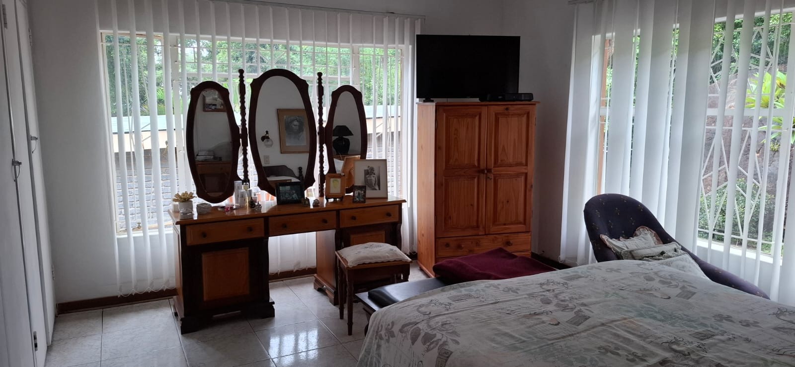 Step inside to find a well-maintained home featuring three tiled bedrooms. The main bedroom offers added privacy with its own en-suite bathroom, while the remaining two bedrooms are serviced by a second bathroom. Both bathrooms are neatly finished, with one offering a bath, shower, basin, and toilet, and the other a shower, basin, and toilet.