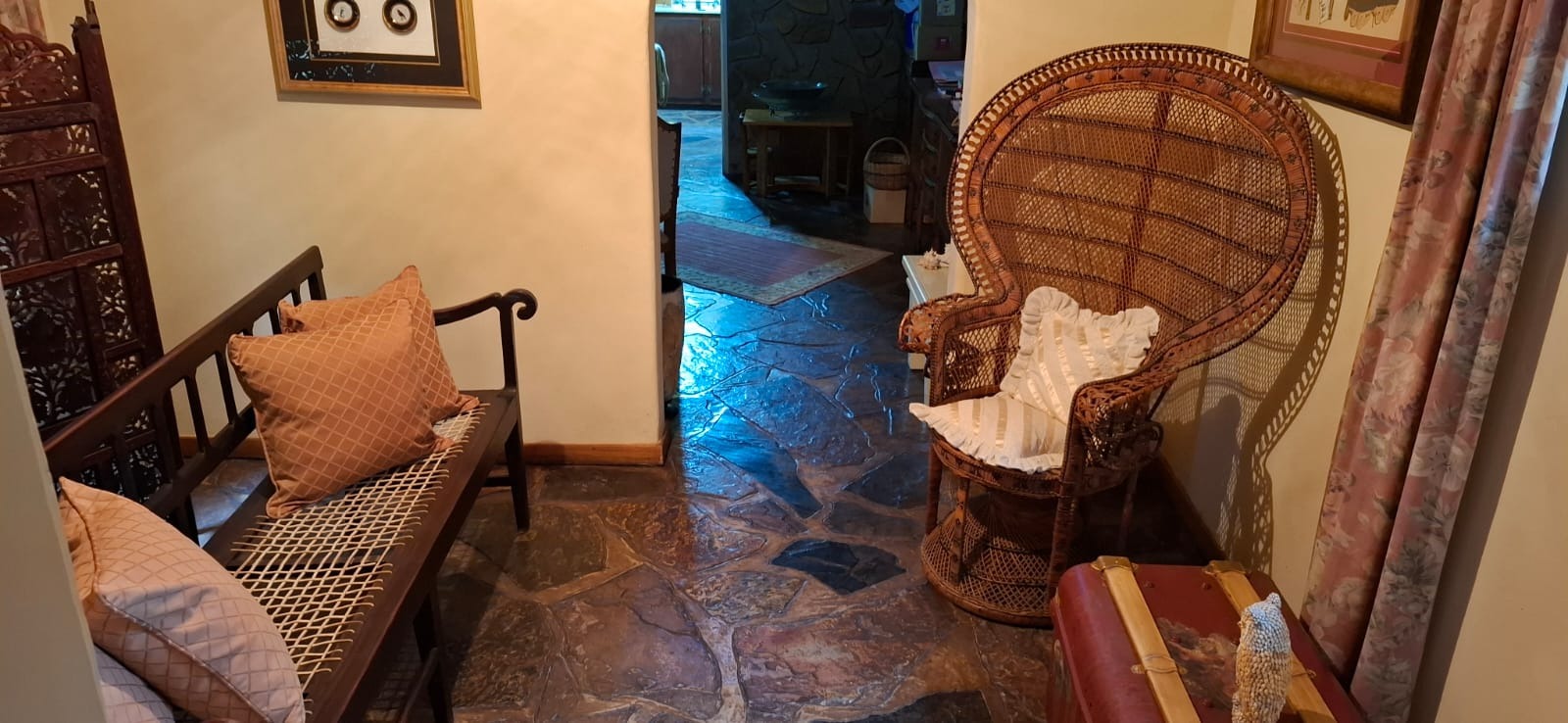 This home truly shines in its living and entertainment spaces, boasting multiple reception areas including a formal lounge with a TV port, a dining room, and a spacious family/TV room. All living areas feature beautiful slate flooring, creating a warm and cohesive flow throughout the home. An inviting entrance hall welcomes you in, while an additional tiled living area provides extra flexibility for relaxation or entertaining.