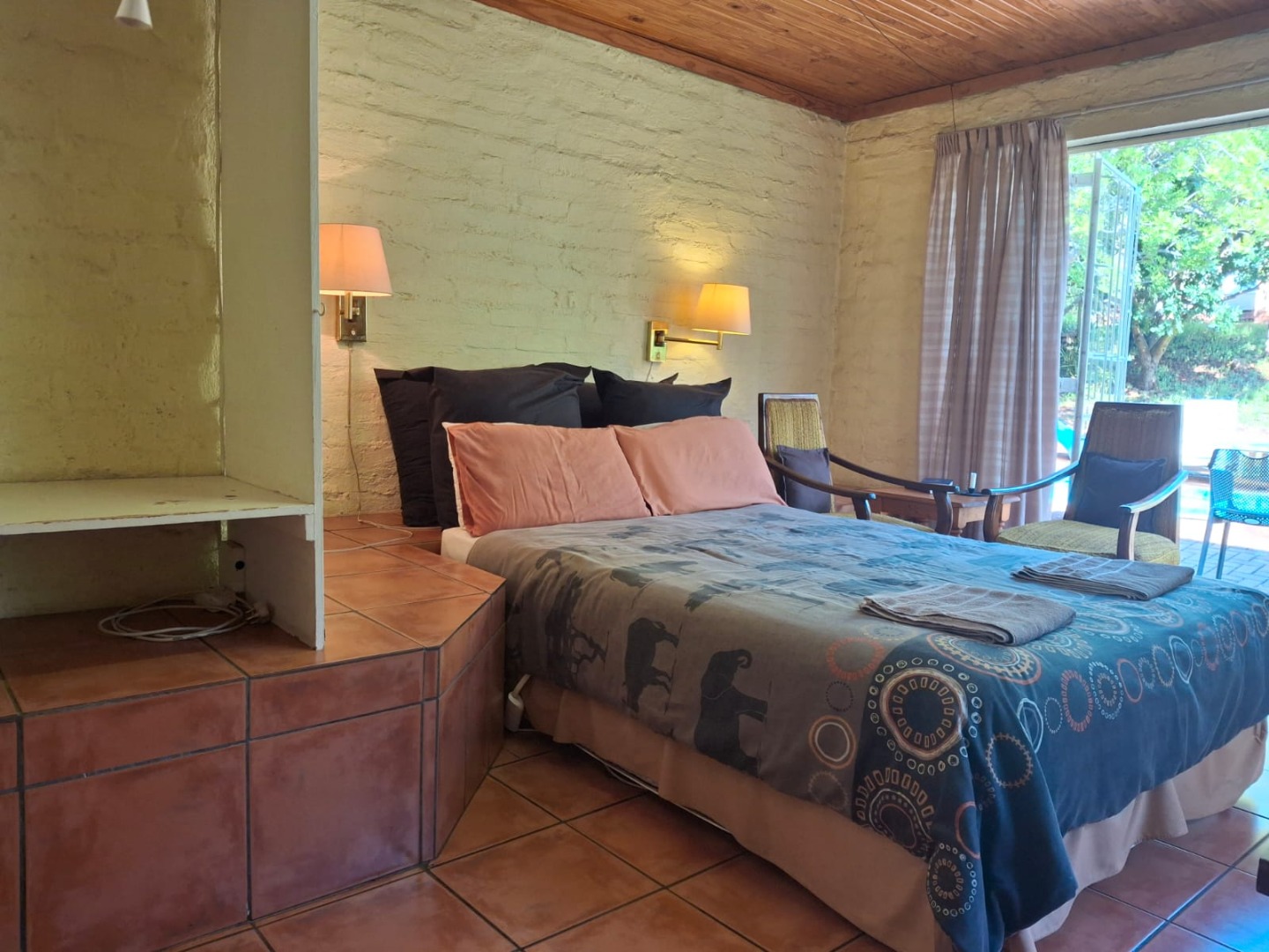 Adding to the accommodation options are two private en-suite bedrooms with a private lounge and dining room, which can also serve as a 10-seater conference facility. The kitchen is outfitted with both gas and electric stoves, two pantries, and a laundry area for convenience.