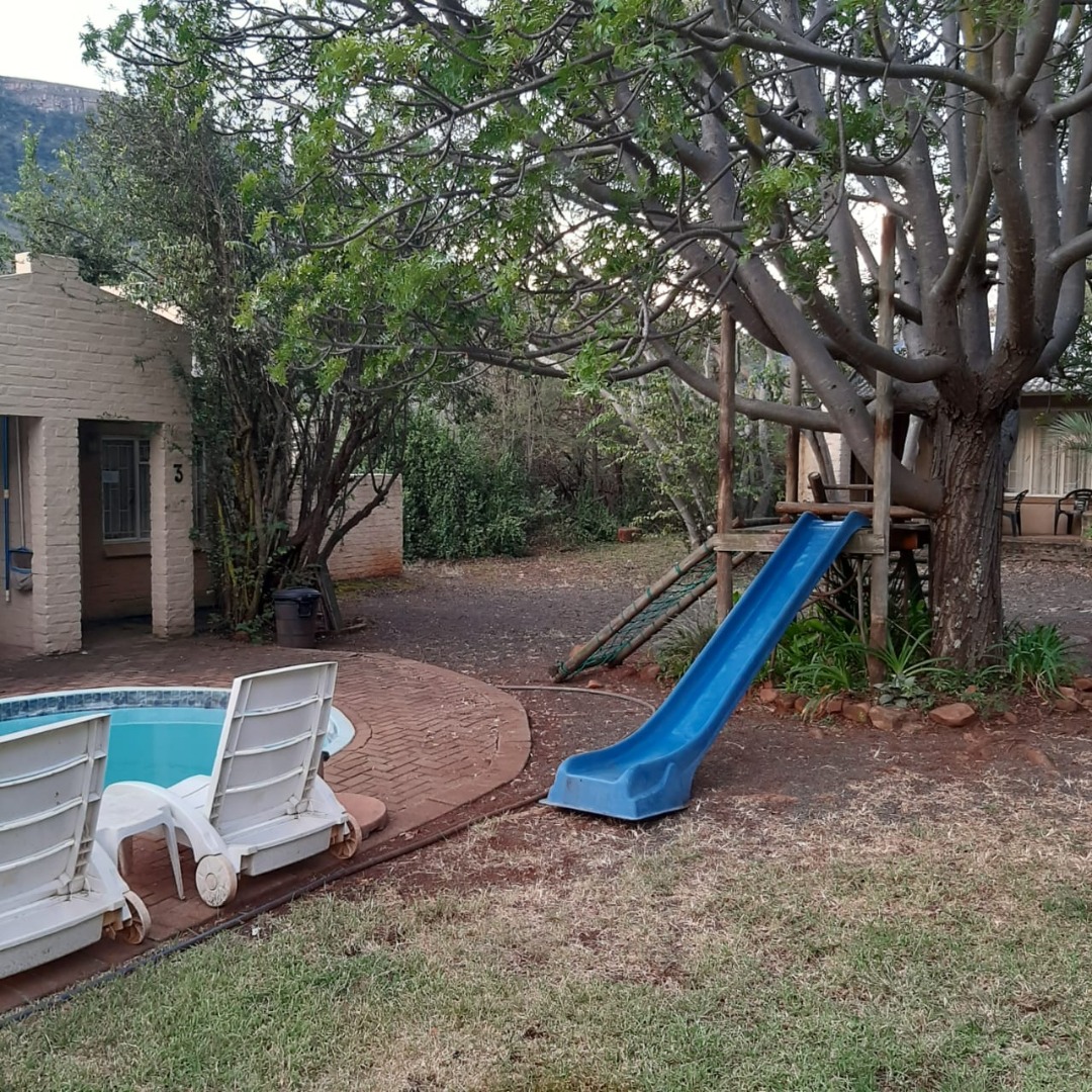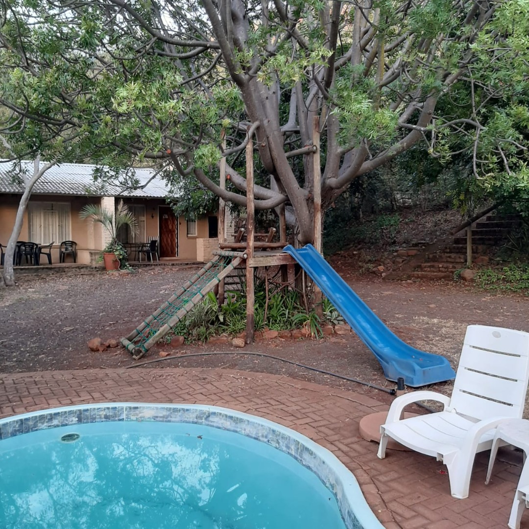 Nestled in the scenic mountain landscape of Waterval Boven, this exceptional 28.1407-hectare property offers a unique opportunity to own a guest retreat with breathtaking views, natural water sources, and convenient access to the N4 and the Elands River. The main house spans 530m² and features five en-suite bedrooms, designed with comfort and relaxation in mind. A welcoming reception area, spacious guest dining room catering for up to 16 guests, lounge, and a separate TV room ensure a seamless hospitality experience.
