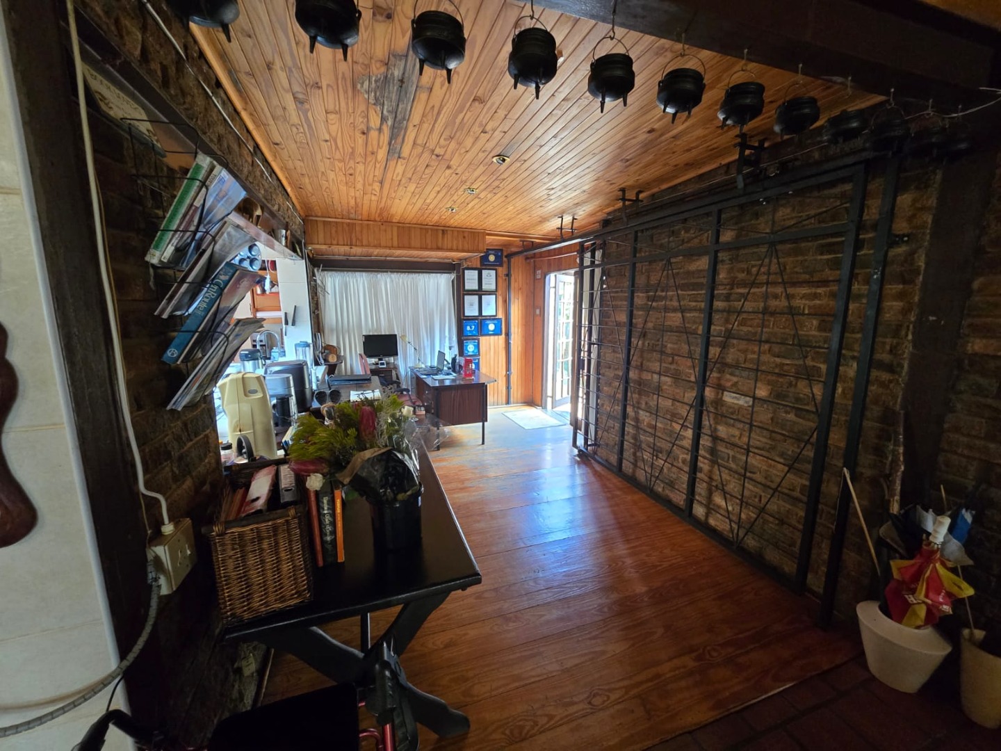 The interior is enhanced by knotty pine ceilings, tiled and laminated wooden floors that create a warm and welcoming atmosphere. Living spaces include a family room, a dedicated dining area, a scullery, a laundry room, a pantry for extra storage, a guest toilet, and a private study, offering both practicality and comfort for long or short-term stays.